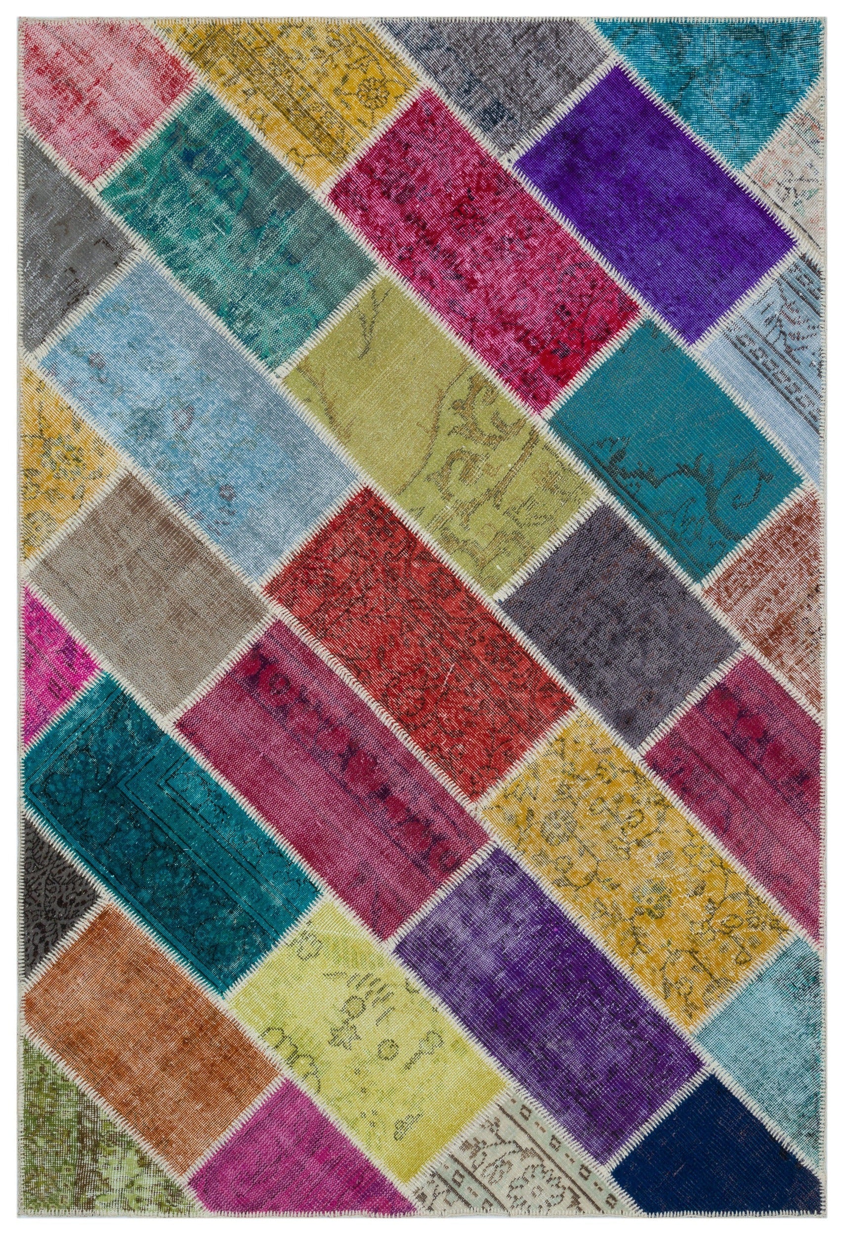 Iskece 33232 Bej Patchwork Yün El Dokuma Halısı 160 x 230