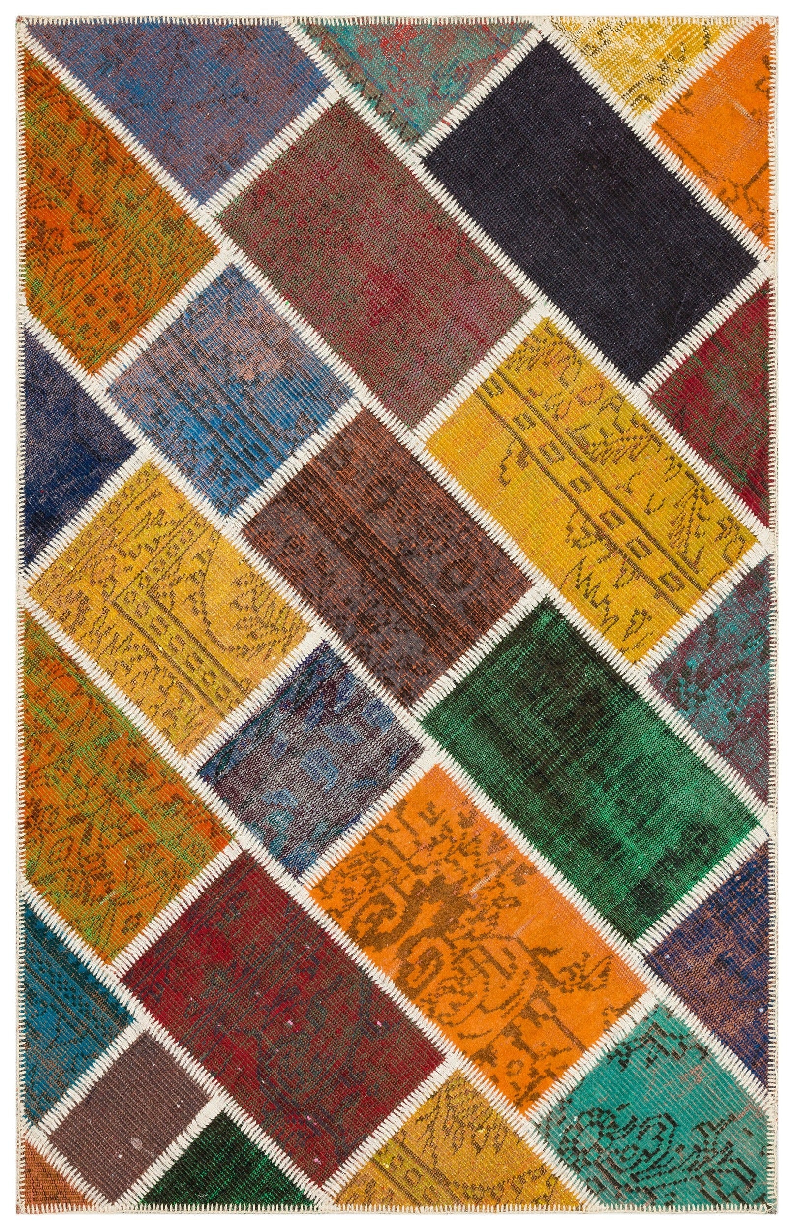 Iskece 35807 Bej Patchwork Yün El Dokuma Halısı 122 x 186