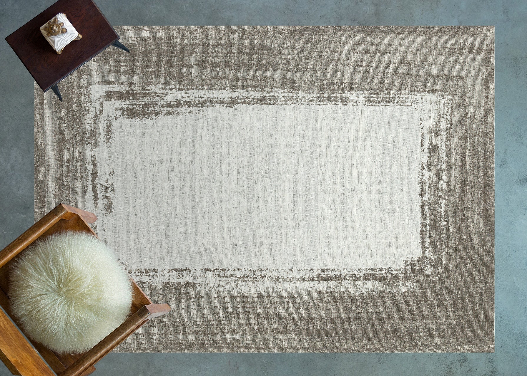 Kahve Çerçeveli Modern Etnik Desenli Halı | Makinada Yıkanabilir | Hav Toz Vermez | Leke Tutmayan | Kaymaz Taban | Dijital Makine Baskı | Salon Yolluk Mutfak Halısı