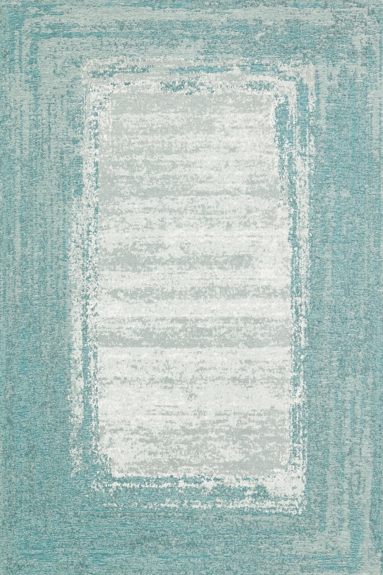 Turkuaz Çerçeveli Modern Etnik Desenli Halı | Makinada Yıkanabilir | Hav Toz Vermez | Leke Tutmayan | Kaymaz Taban | Dijital Makine Baskı | Salon Yolluk Mutfak Halısı