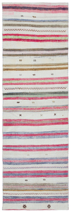 Girit Beyaz Çizgili Yün El Dokuma Halısı 088 x 270