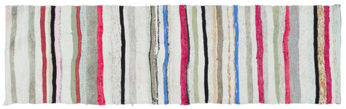 Girit Beyaz Çizgili Yün El Dokuma Halısı 062 x 222