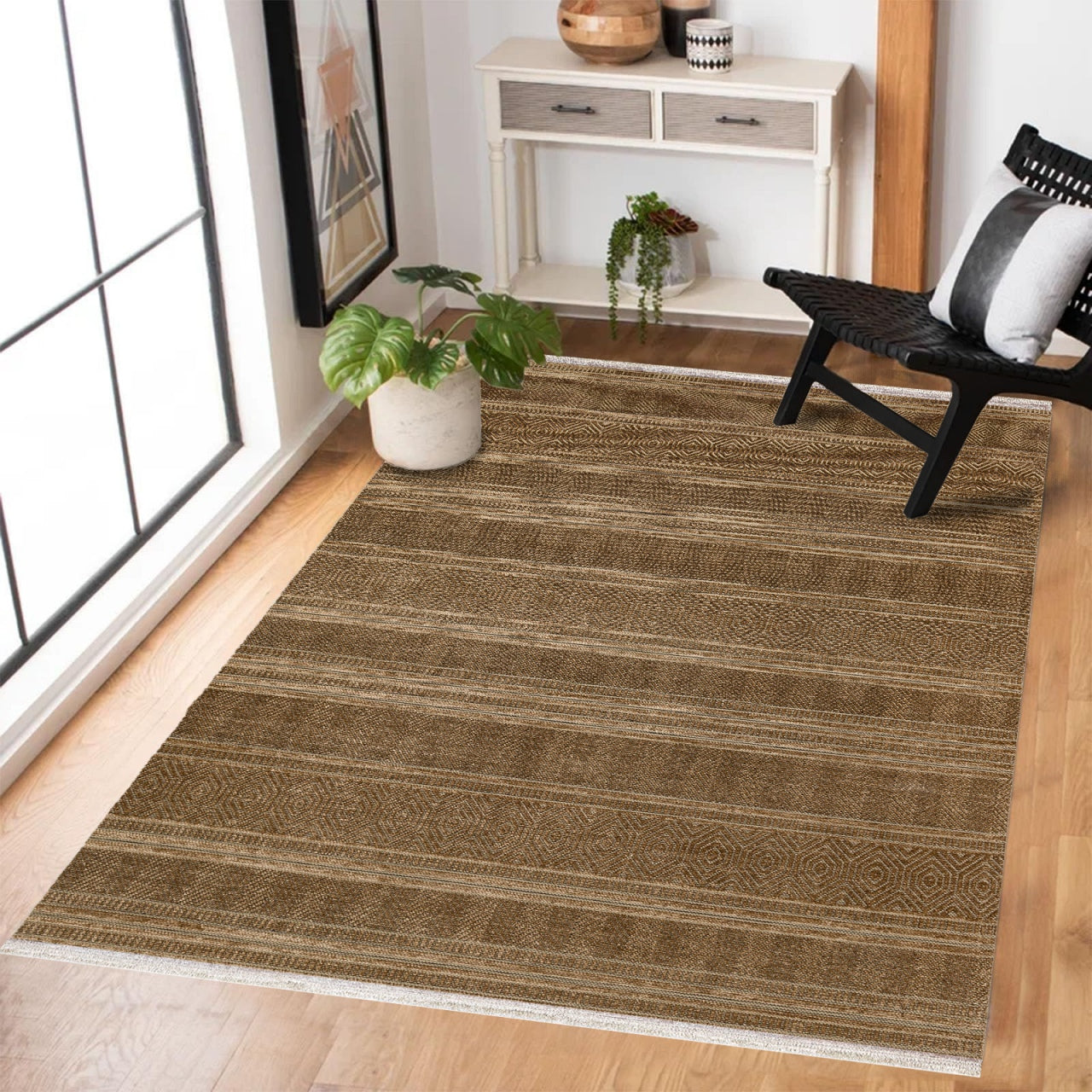 Bej Etnik Modern Etnik Desenli Halı | Makinada Yıkanabilir | Hav Toz Vermez | Leke Tutmayan | Kaymaz Taban | Dijital Makine Baskı | Salon Yolluk Mutfak Halısı
