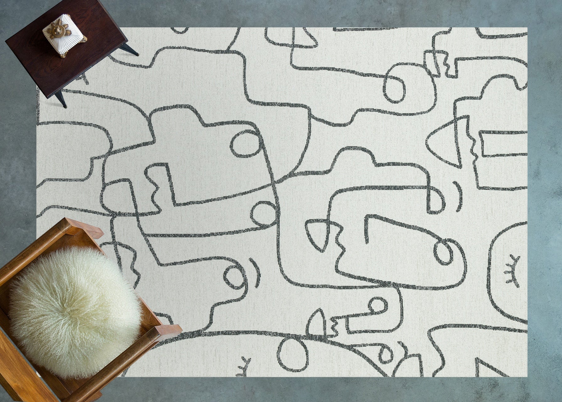Beyaz Soyut Modern Etnik Desenli Halı | Makinada Yıkanabilir | Hav Toz Vermez | Leke Tutmayan | Kaymaz Taban | Dijital Makine Baskı | Salon Yolluk Mutfak Halısı