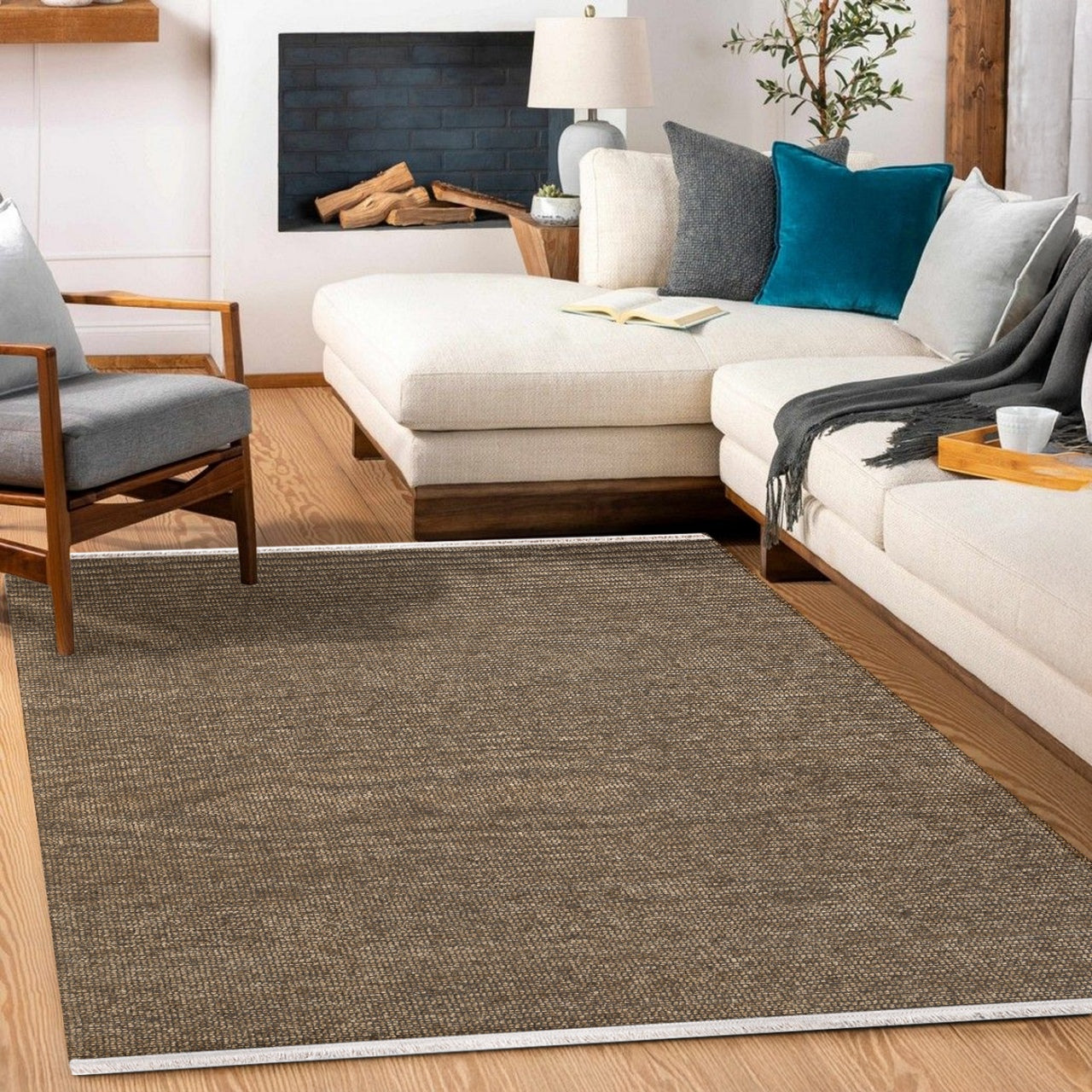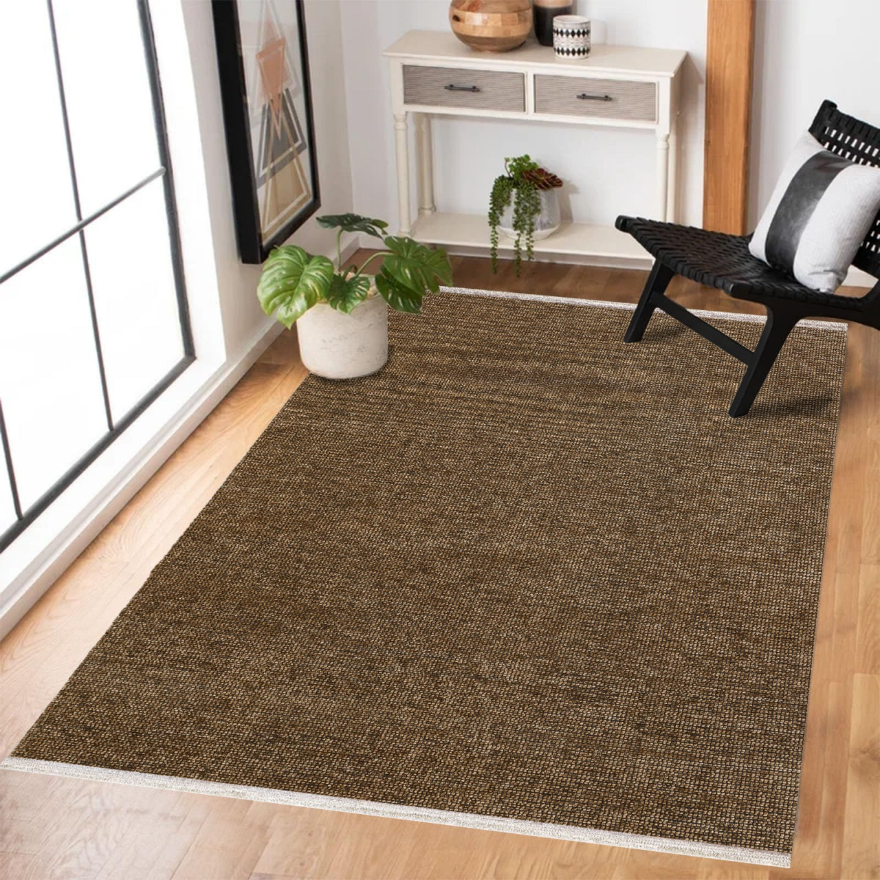 Kahve Düz Modern Etnik Desenli Halı | Makinada Yıkanabilir | Hav Toz Vermez | Leke Tutmayan | Kaymaz Taban | Dijital Makine Baskı | Salon Yolluk Mutfak Halısı