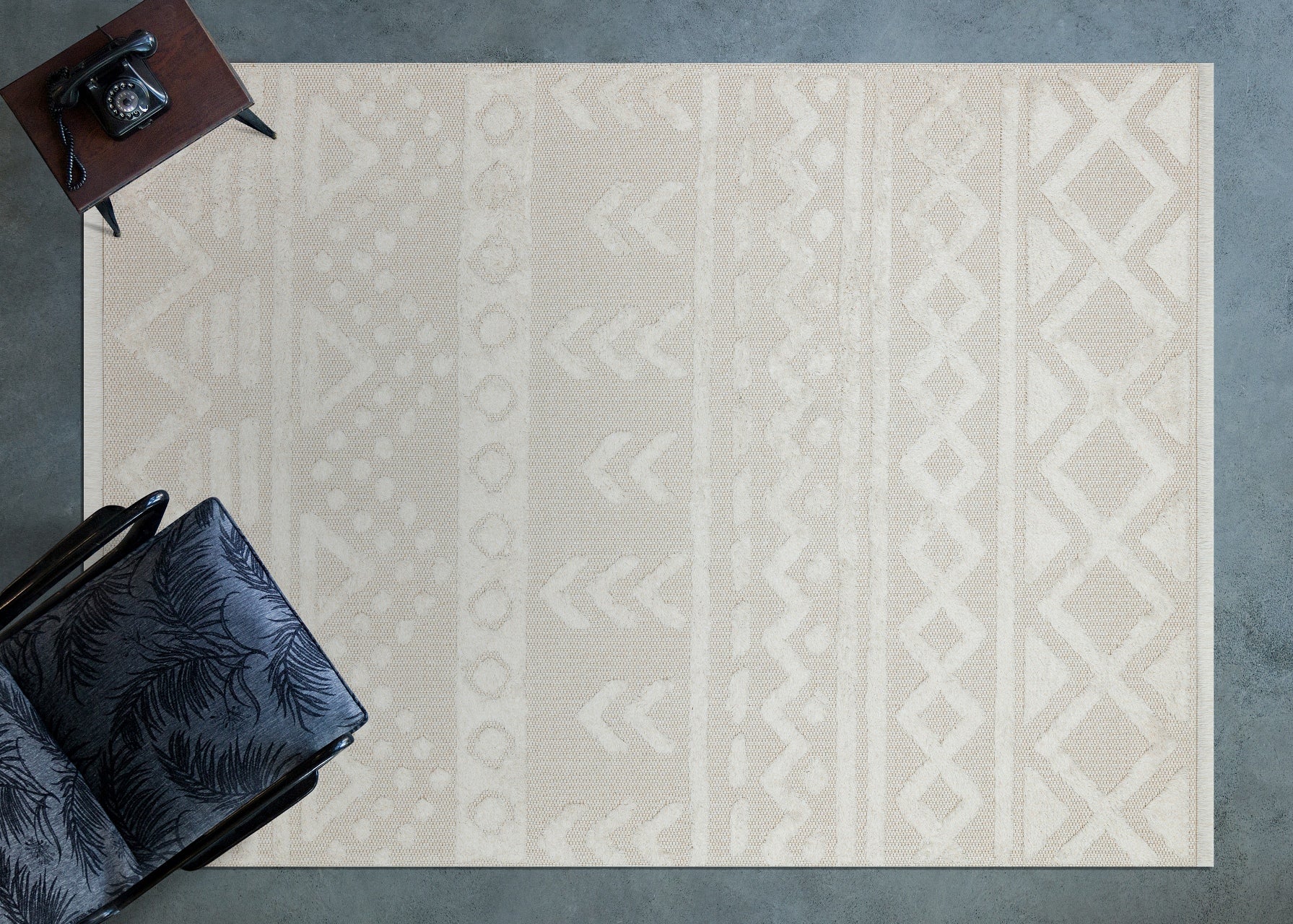 Krem Etnik Modern Etnik Desenli Halı | Makinada Yıkanabilir | Hav Toz Vermez | Leke Tutmayan | Kaymaz Taban | Dijital Makine Baskı | Salon Yolluk Mutfak Halısı