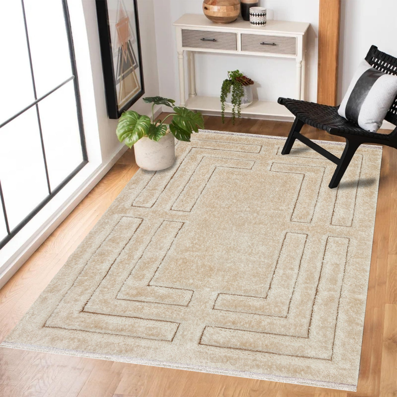 Krem Geometrik Modern Etnik Desenli Halı | Makinada Yıkanabilir | Hav Toz Vermez | Leke Tutmayan | Kaymaz Taban | Dijital Makine Baskı | Salon Yolluk Mutfak Halısı