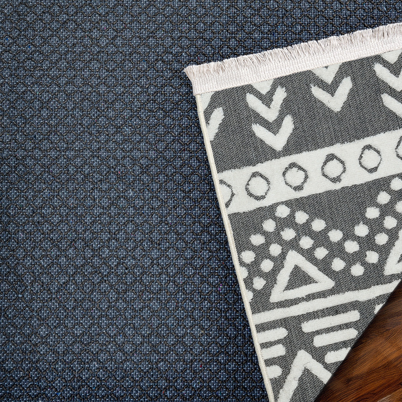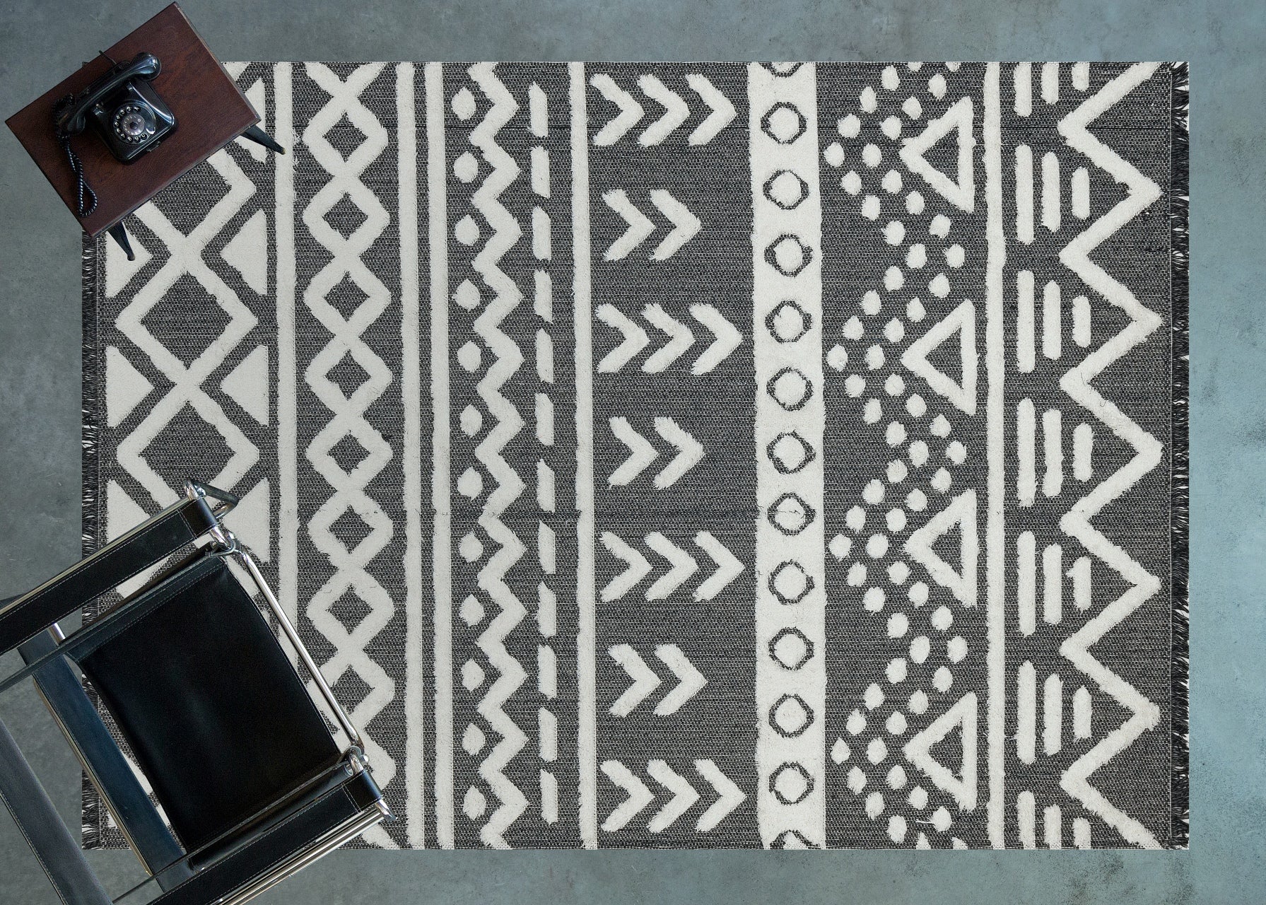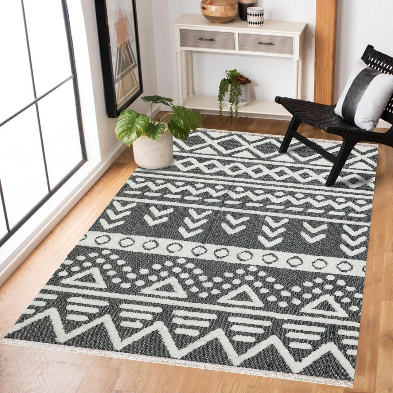 Siyah Etnik Modern Etnik Desenli Halı | Makinada Yıkanabilir | Hav Toz Vermez | Leke Tutmayan | Kaymaz Taban | Dijital Makine Baskı | Salon Yolluk Mutfak Halısı