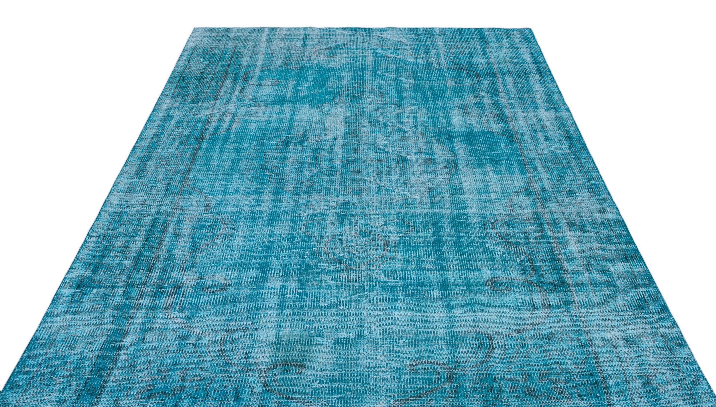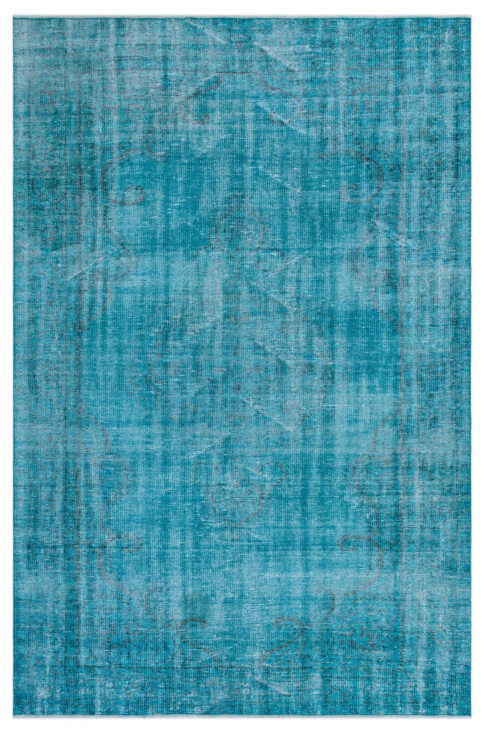 Atina Turkuaz Eskitme Yün El Dokuma Halısı 185 x 277