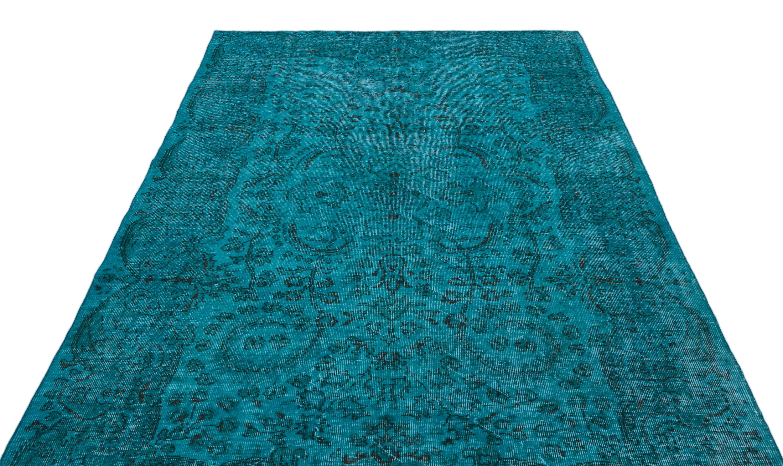 Atina Turkuaz Eskitme Yün El Dokuma Halısı 174 x 279