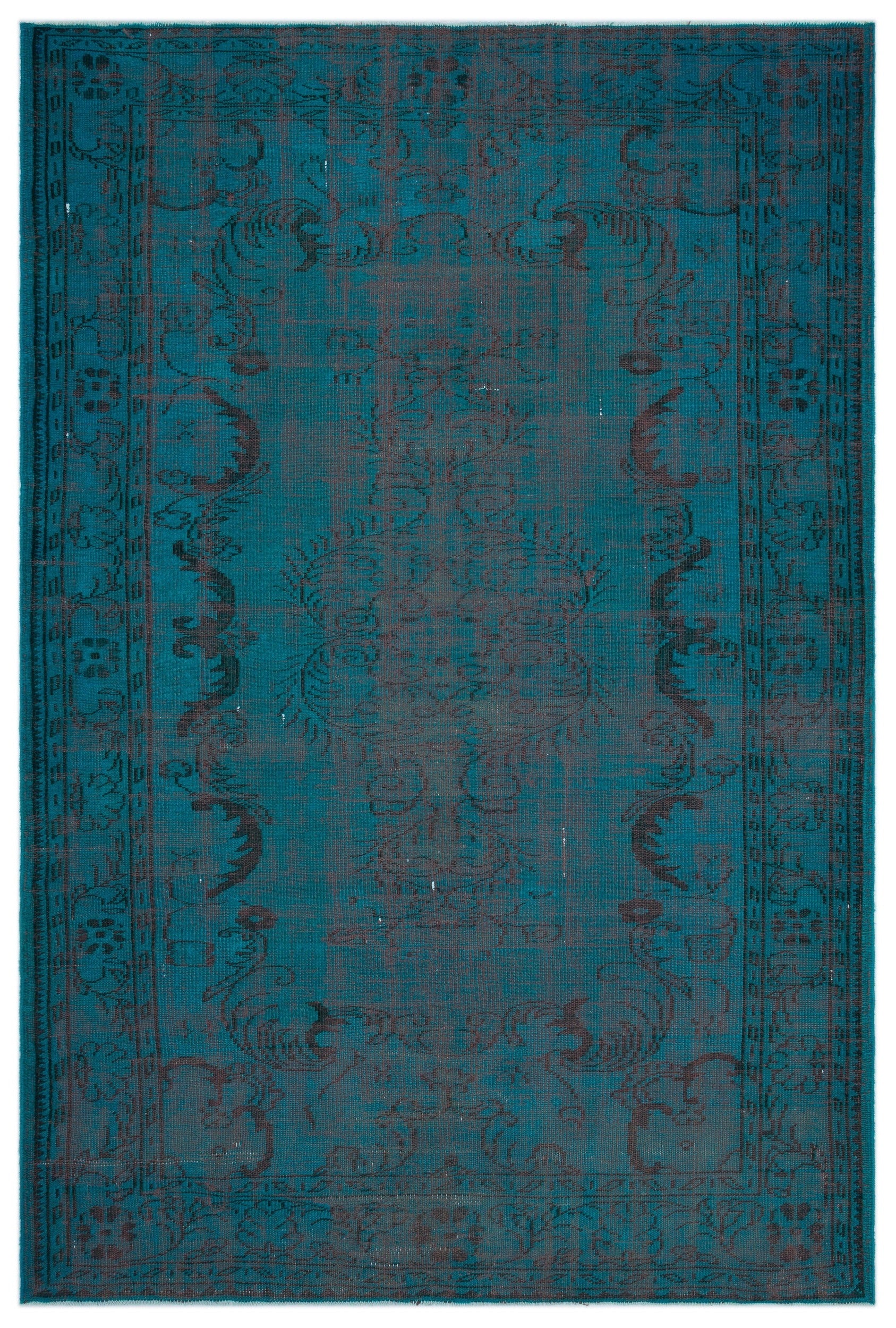 Atina Turkuaz Eskitme Yün El Dokuma Halısı 195 x 291