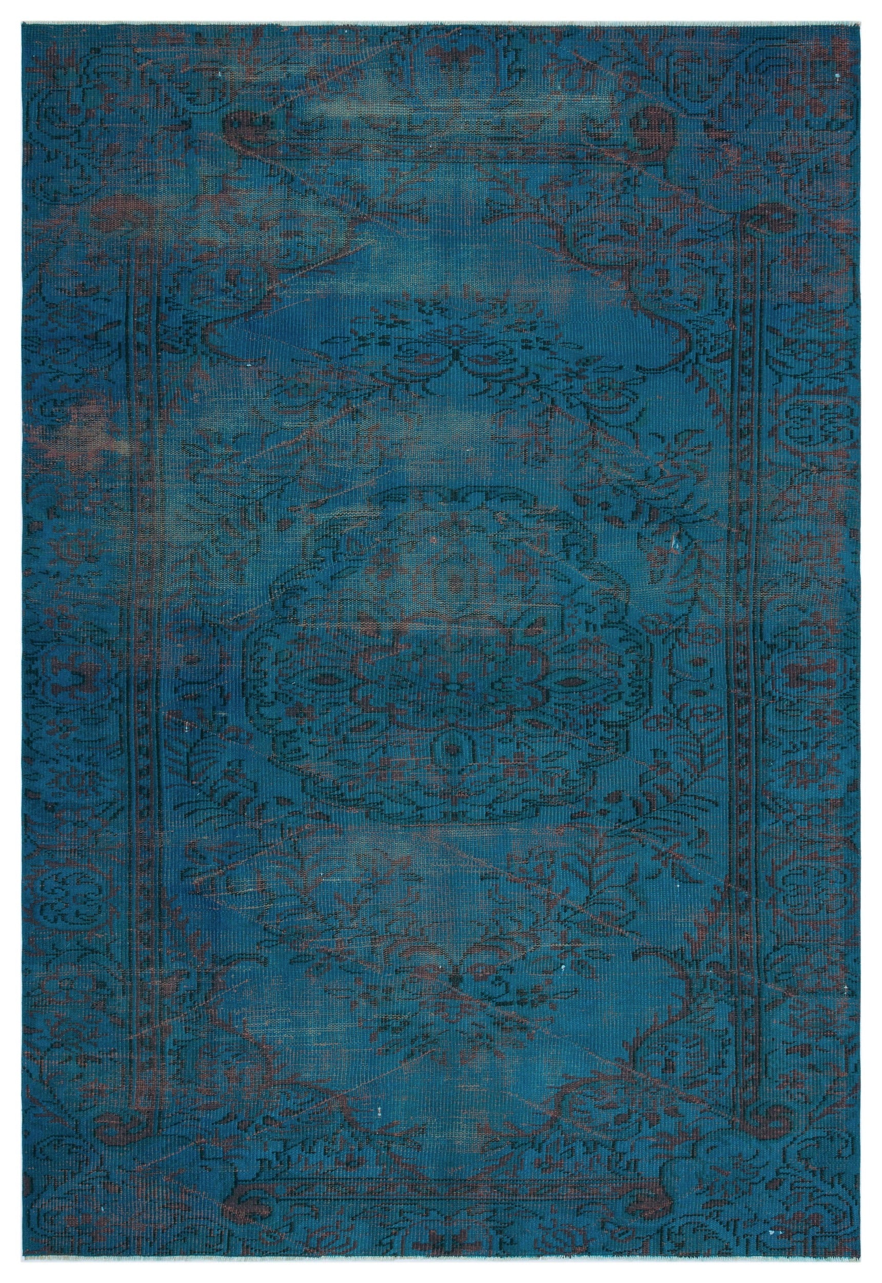Atina Turkuaz Eskitme Yün El Dokuma Halısı 158 x 235