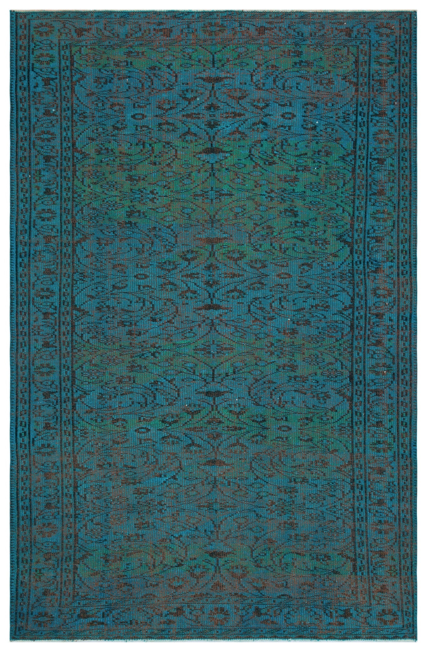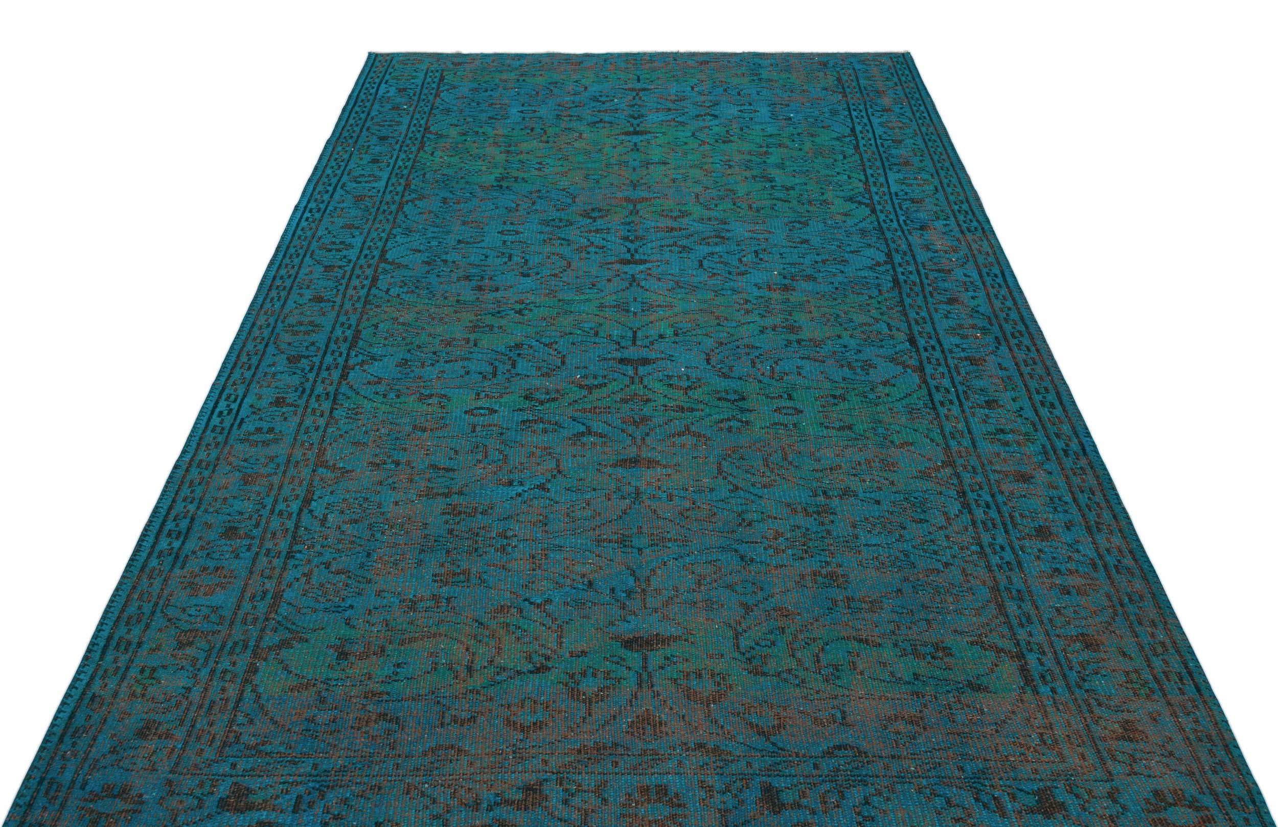 Atina Turkuaz Eskitme Yün El Dokuma Halısı 168 x 262