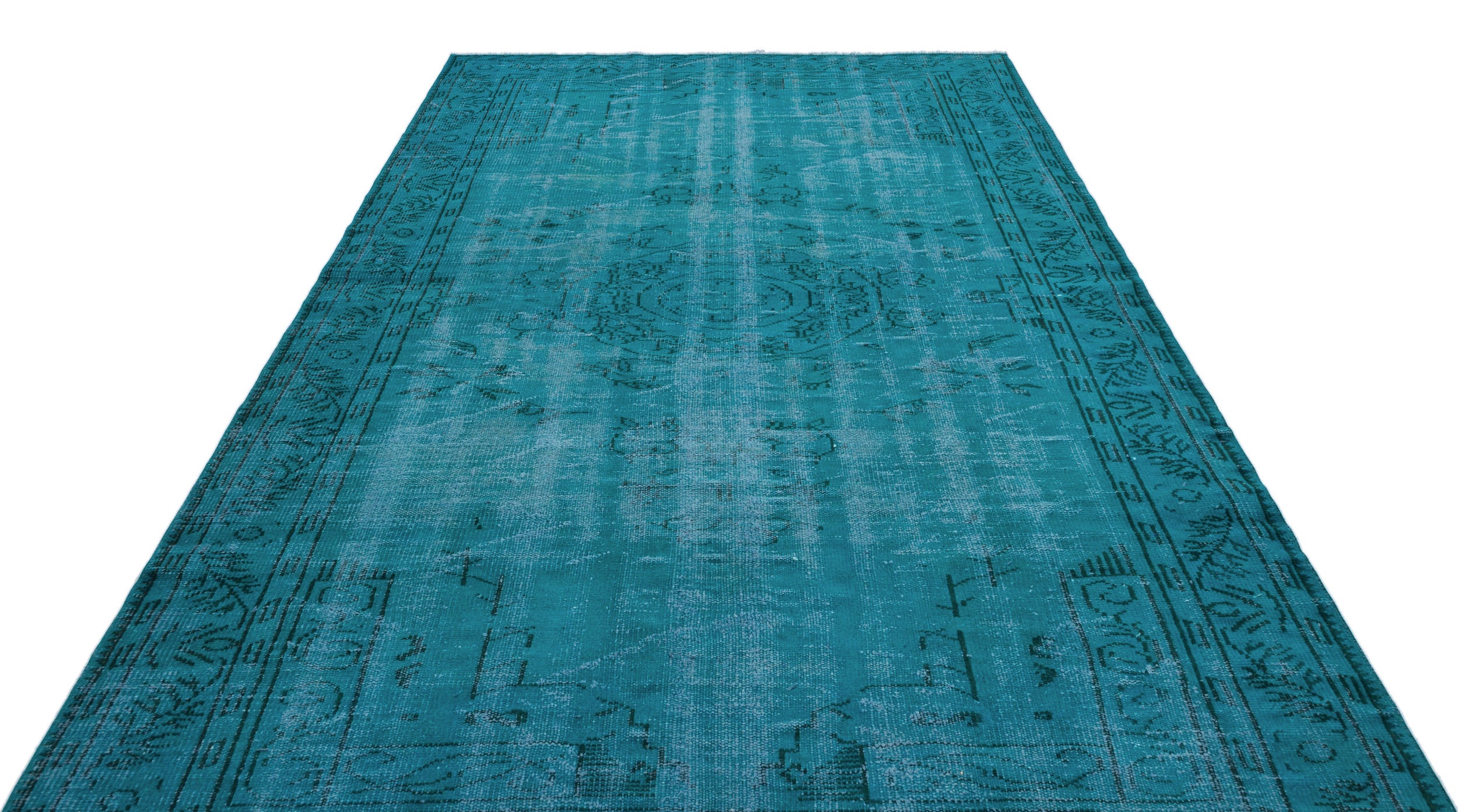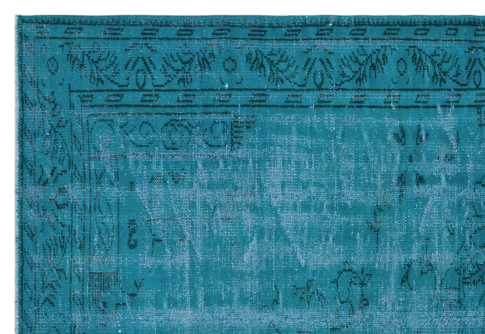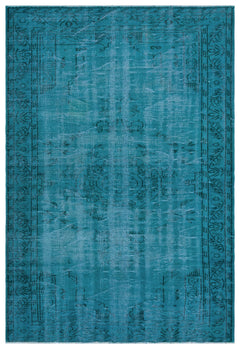 Atina Turkuaz Eskitme Yün El Dokuma Halısı 196 x 281
