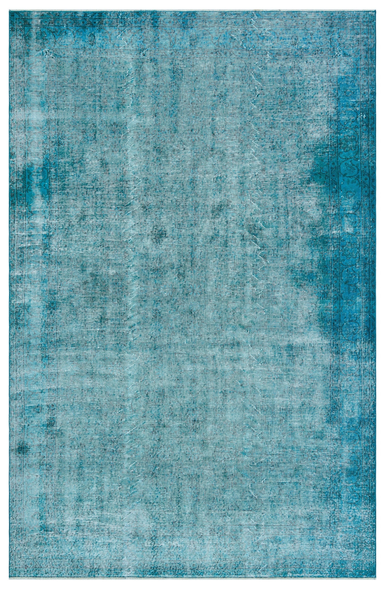 Atina Turkuaz Eskitme Yün El Dokuma Halısı 190 x 298