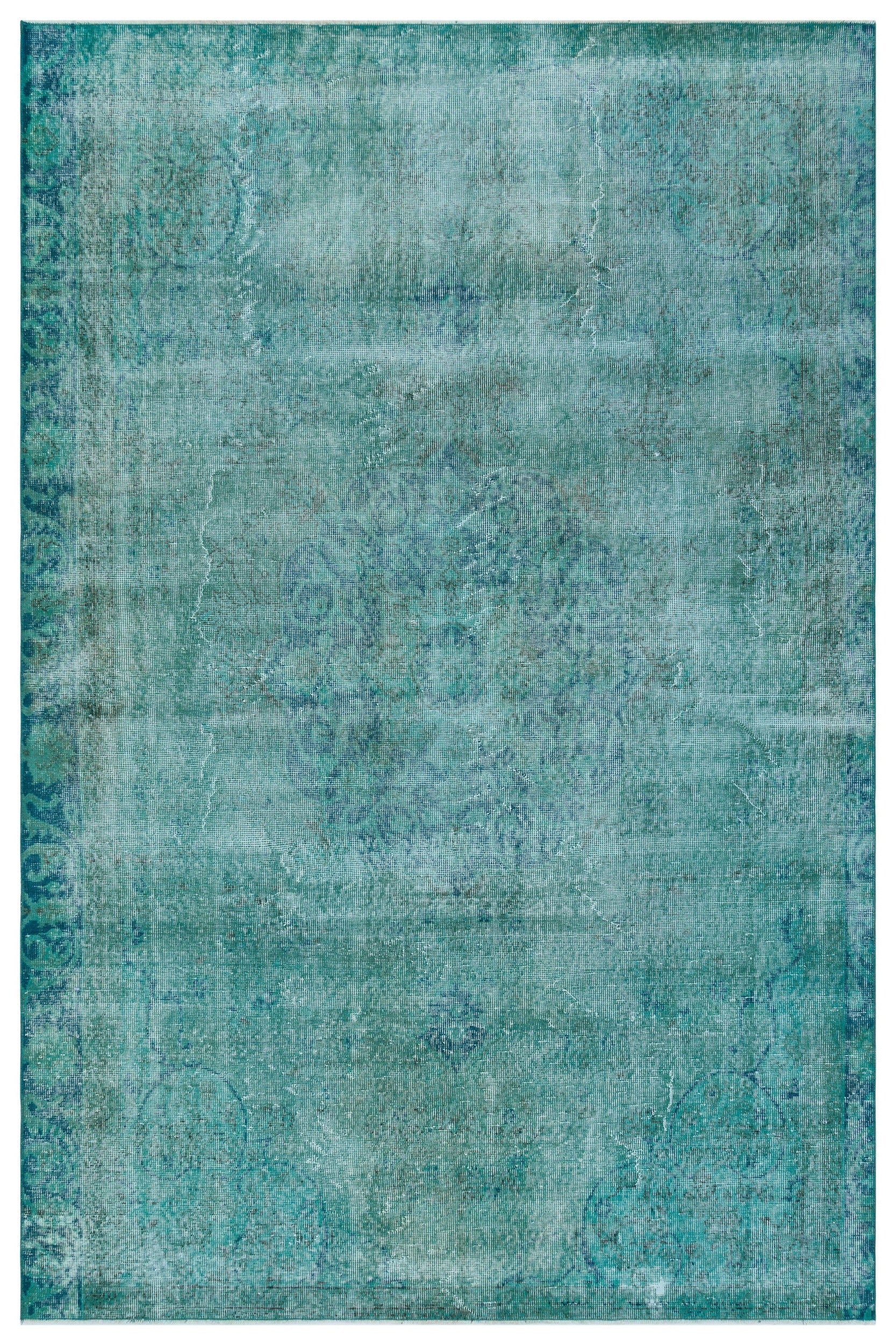 Atina Turkuaz Eskitme Yün El Dokuma Halısı 182 x 274