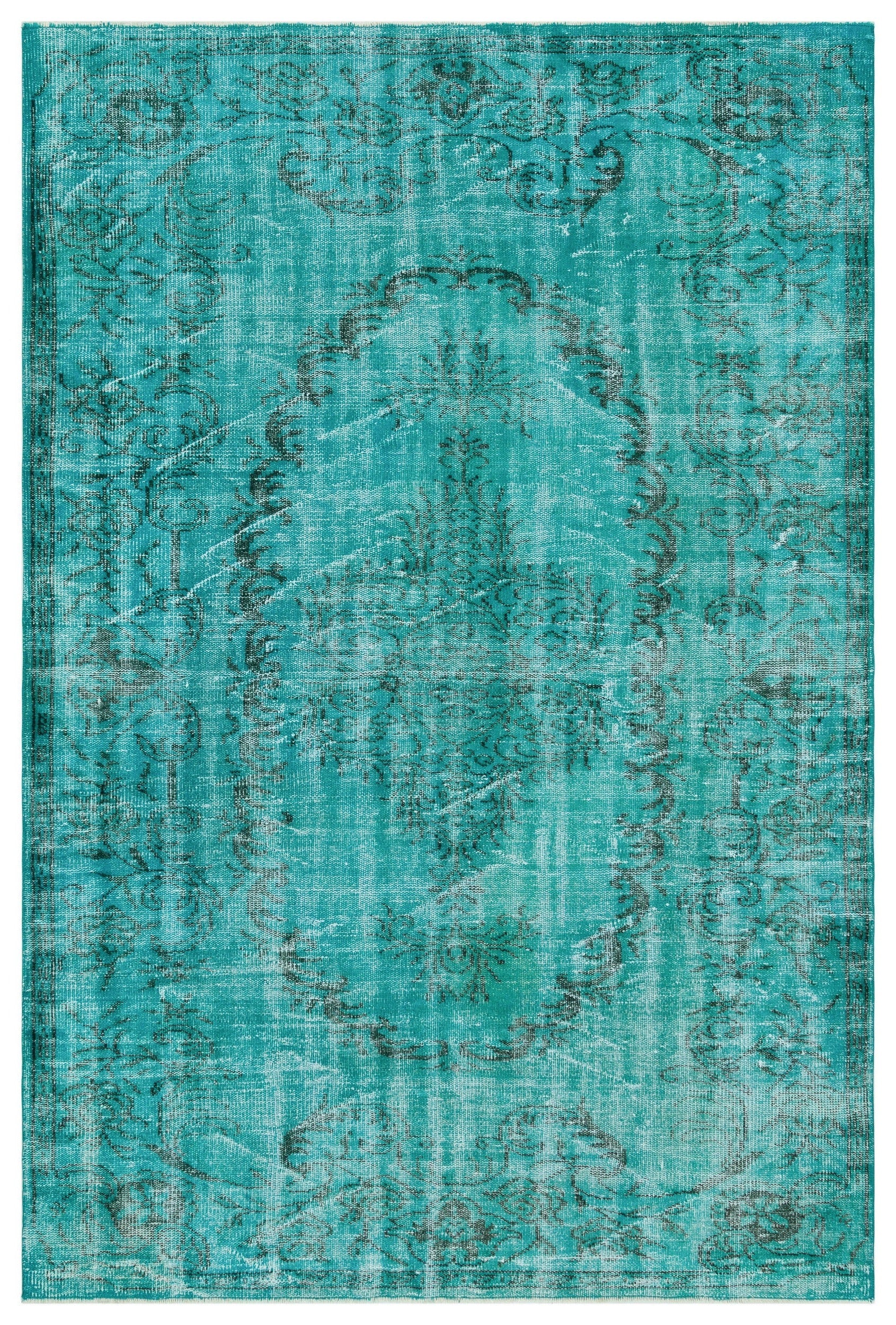 Atina Turkuaz Eskitme Yün El Dokuma Halısı 182 x 267
