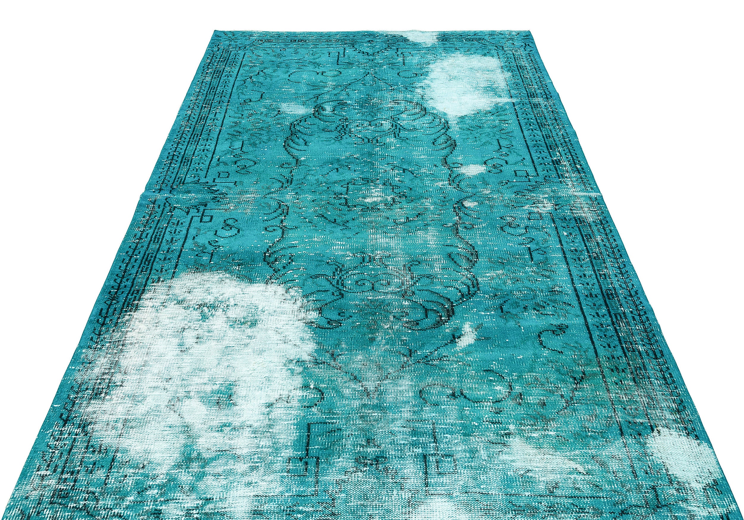 Atina Turkuaz Eskitme Yün El Dokuma Halısı 156 x 253