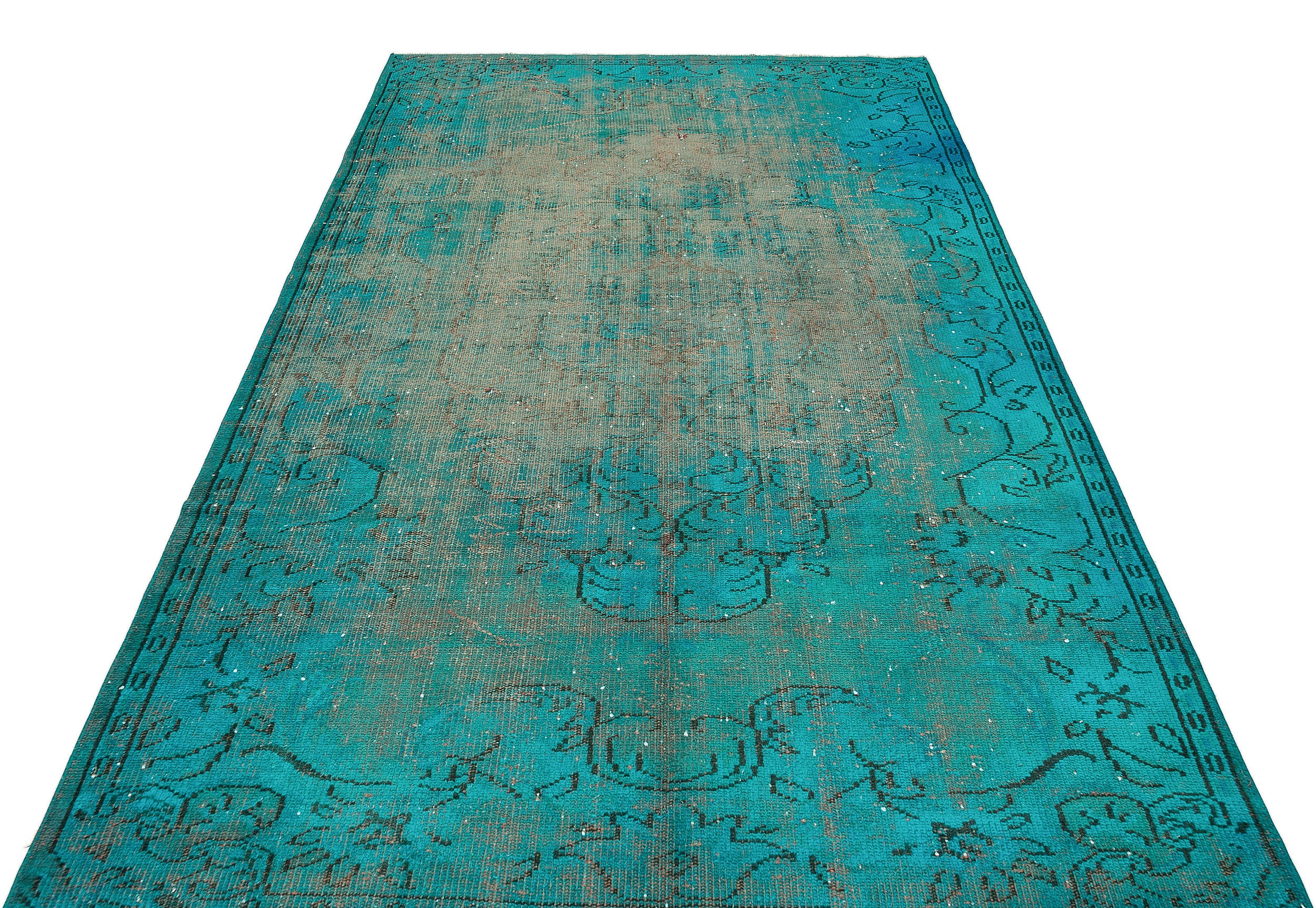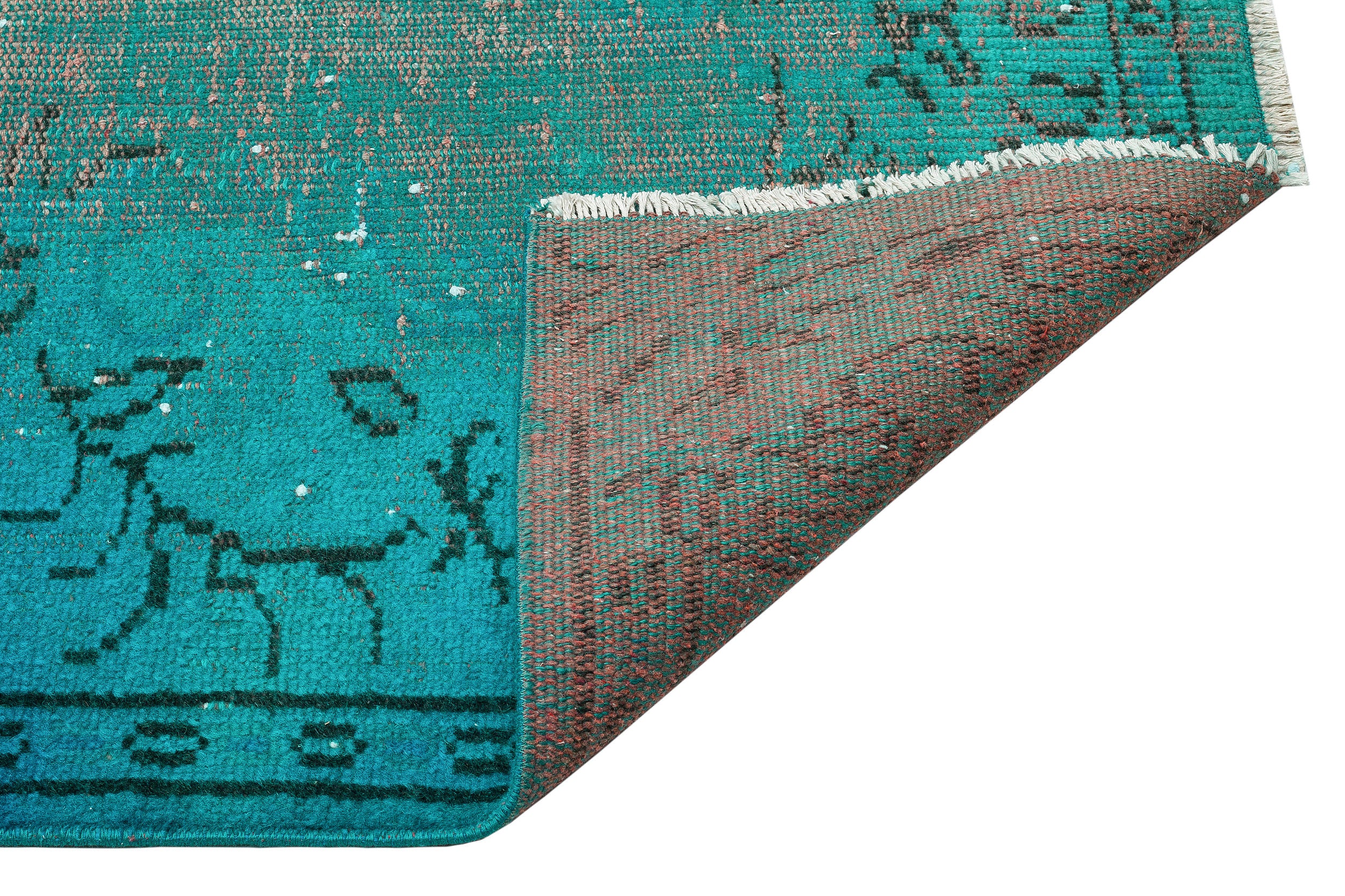 Atina Turkuaz Eskitme Yün El Dokuma Halısı 166 x 273