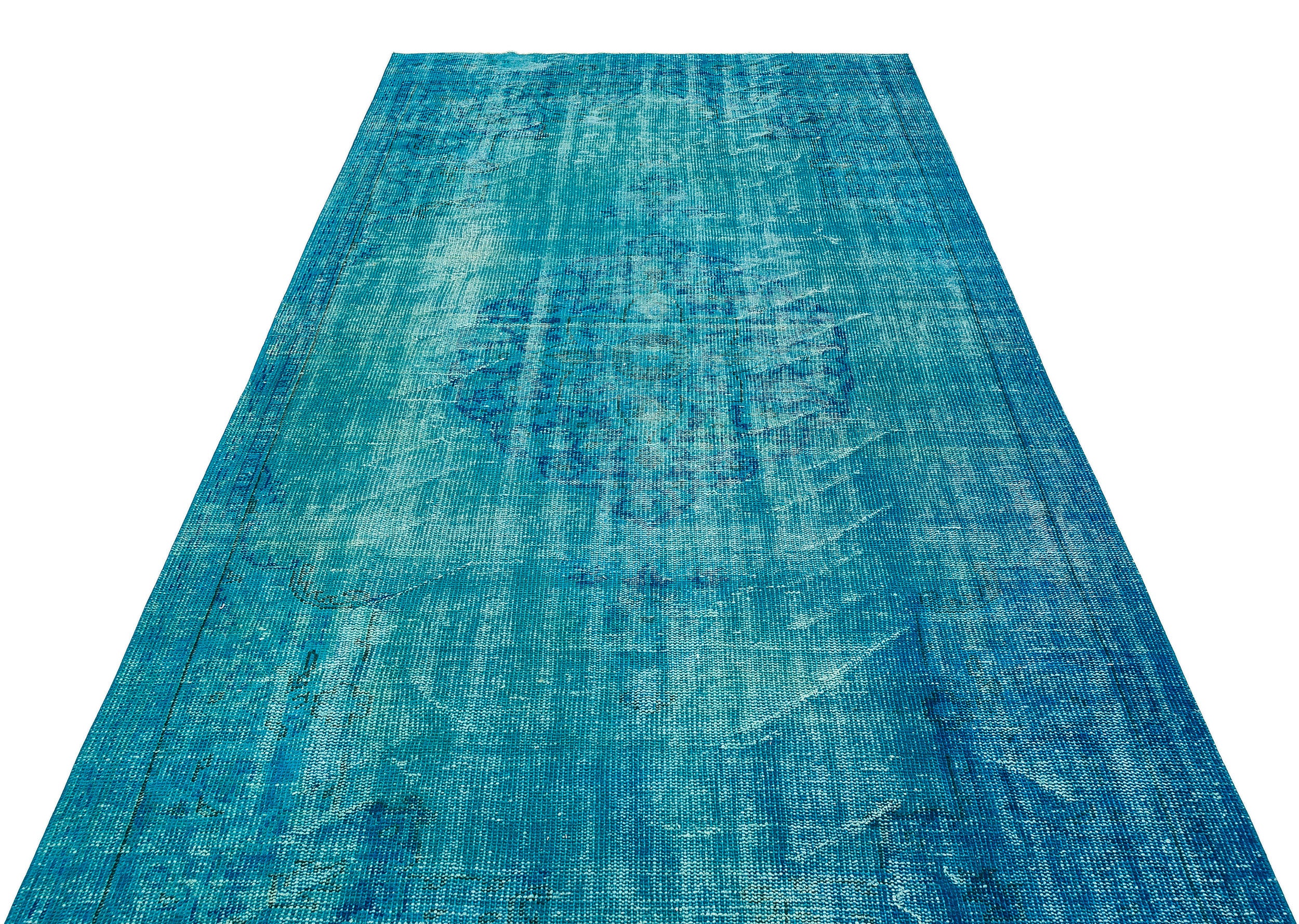 Atina Turkuaz Eskitme Yün El Dokuma Halısı 165 x 311