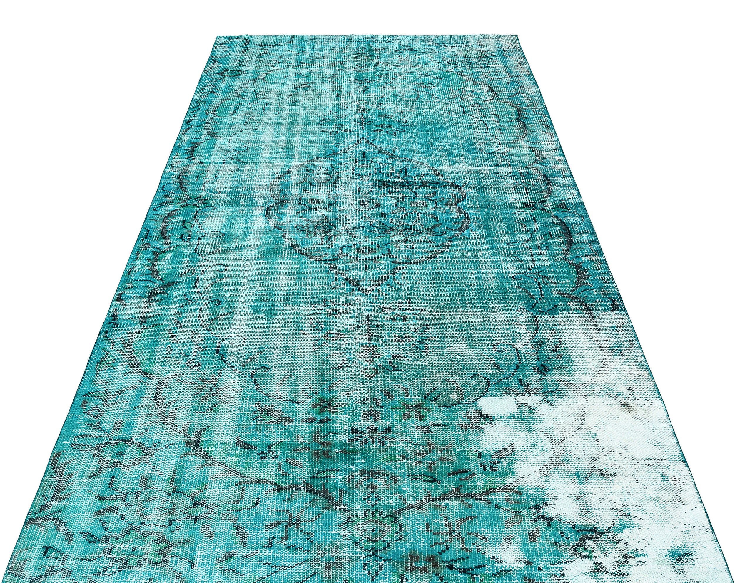 Atina Turkuaz Eskitme Yün El Dokuma Halısı 141 x 266