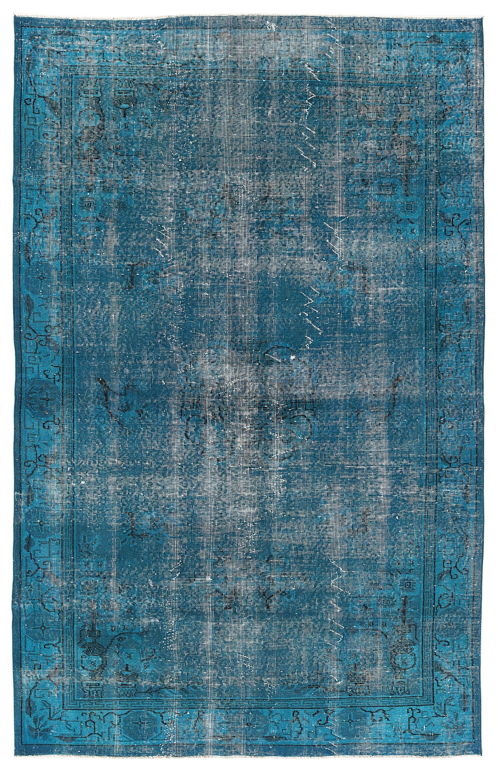 Atina Turkuaz Eskitme Yün El Dokuma Halısı 170 x 270