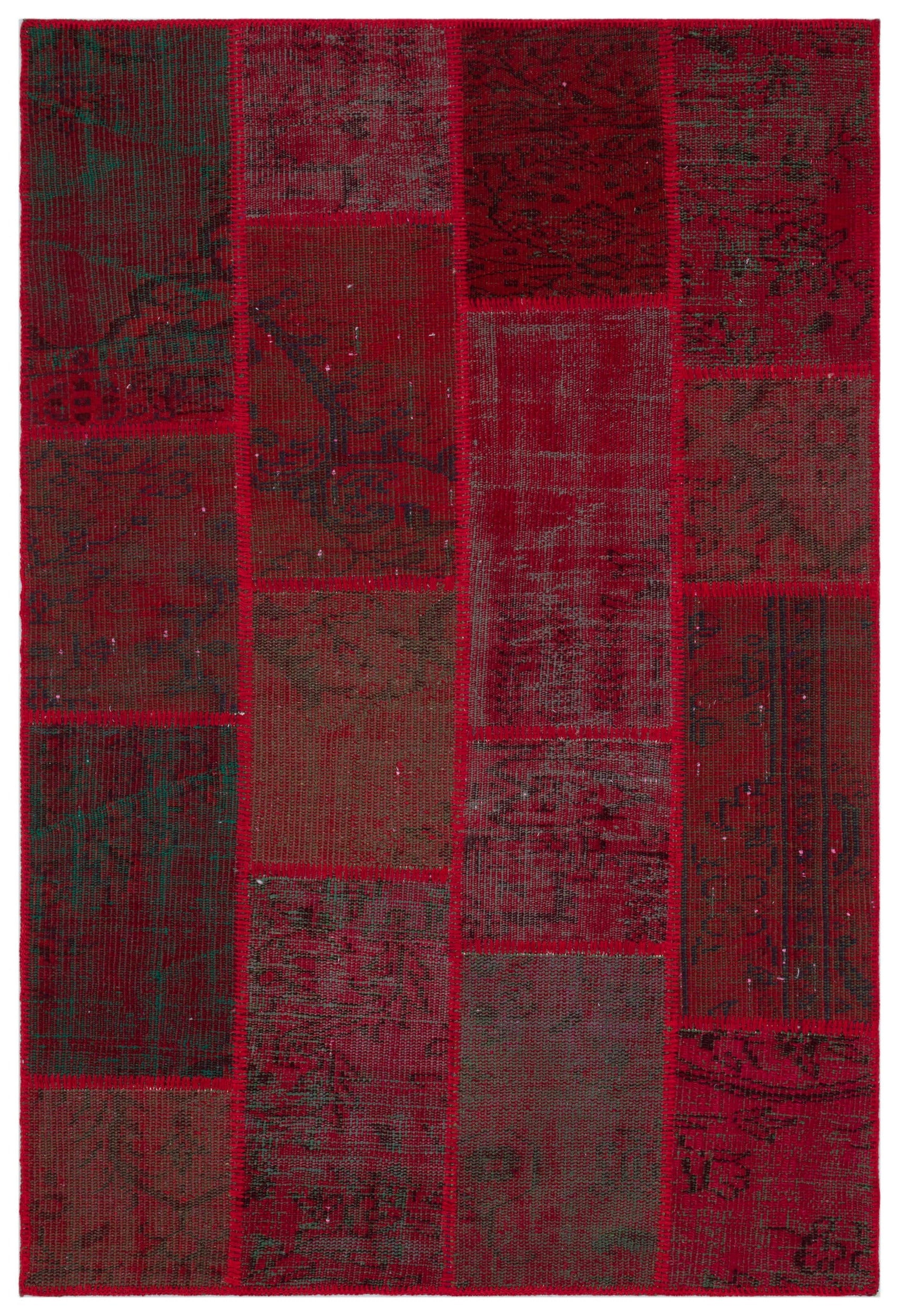 Iskece 33151 Kırmızı Patchwork Yün El Dokuma Halısı 120 x 180