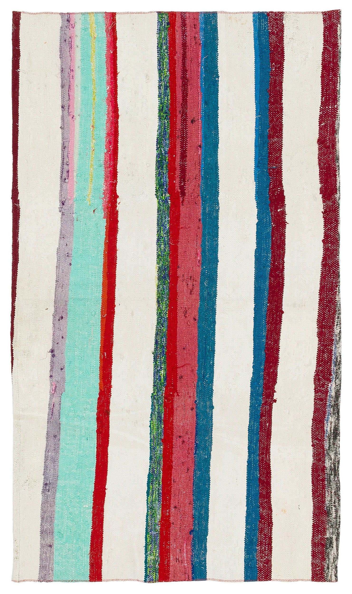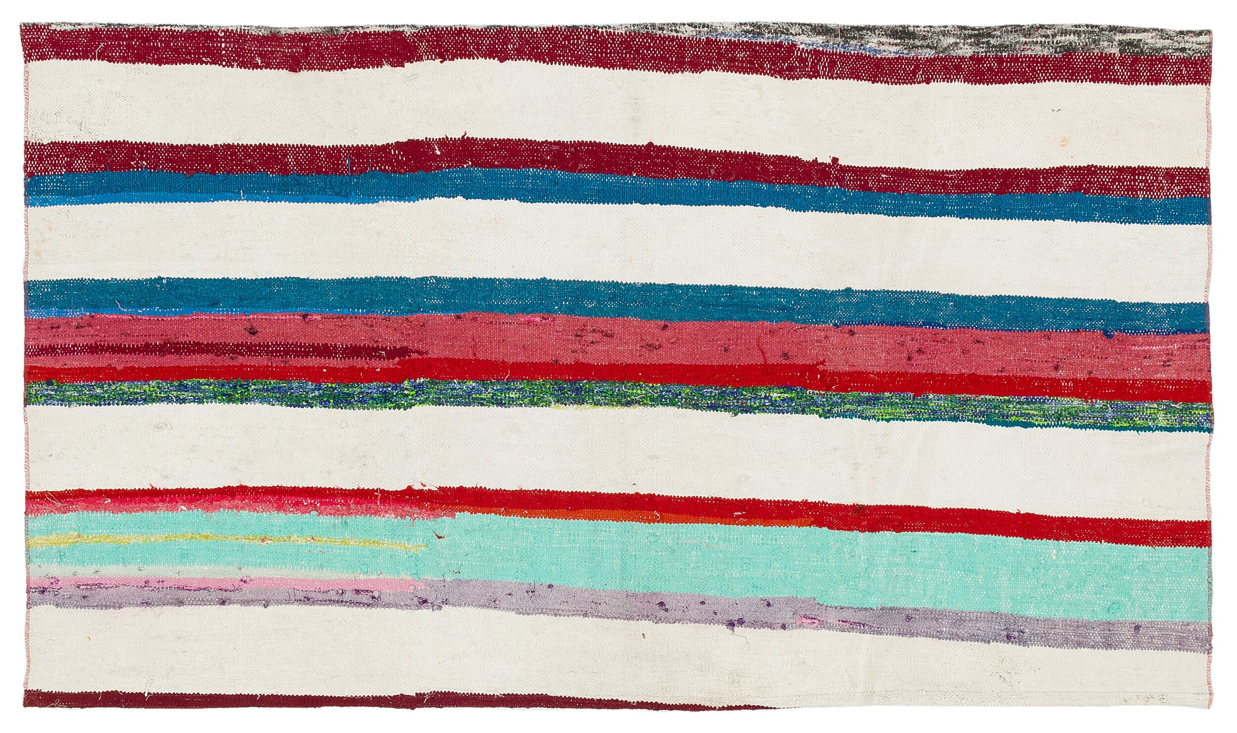 Girit Beyaz Çizgili Yün El Dokuma Halısı 098 x 169