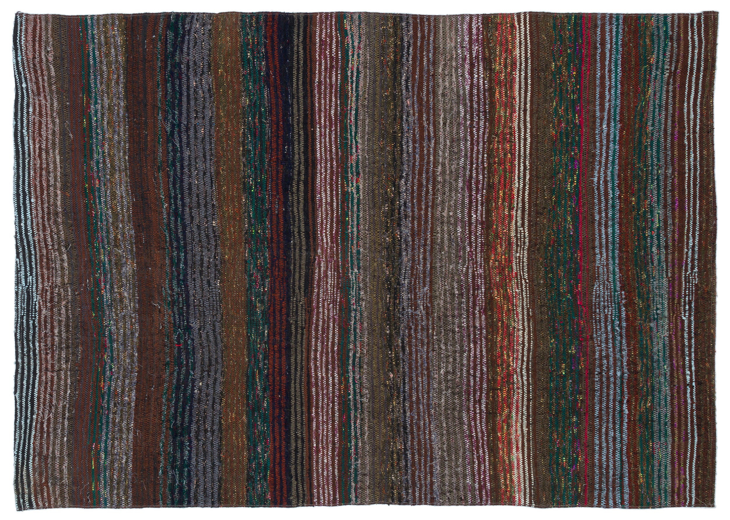 Girit Kahverengi Çizgili Yün El Dokuma Halısı 140 x 202