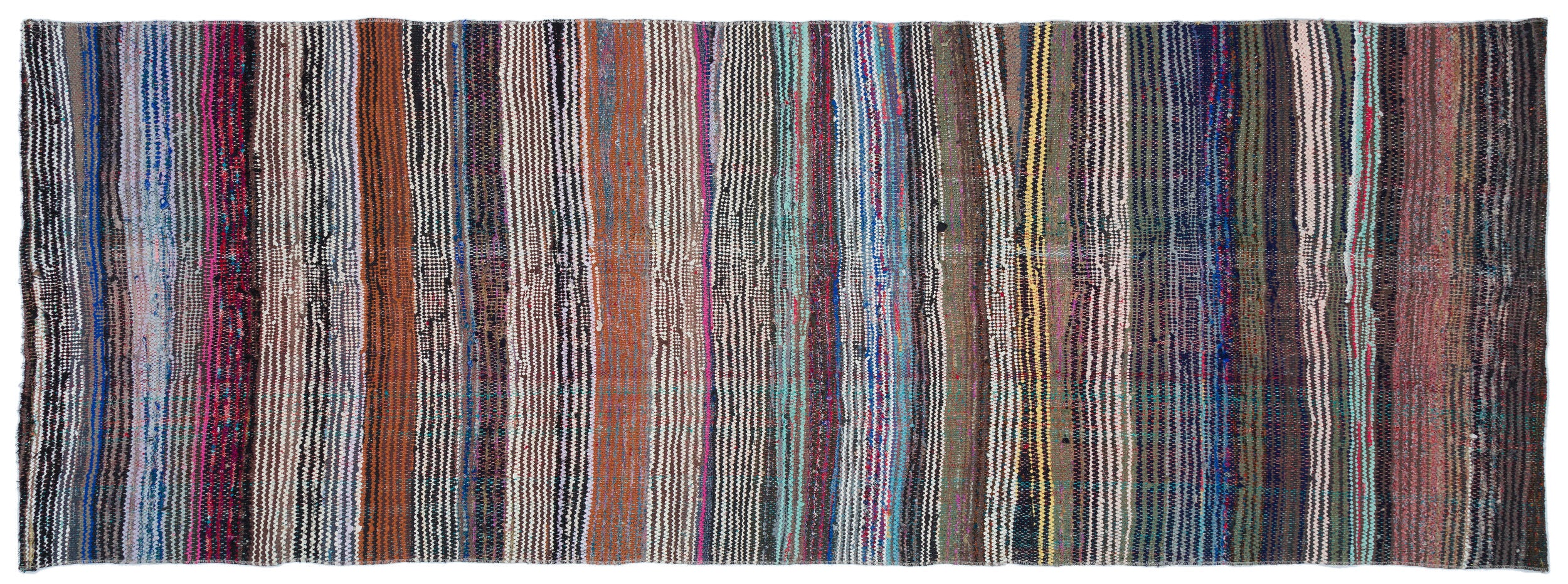 Girit Kahverengi Çizgili Yün El Dokuma Halısı 115 x 320