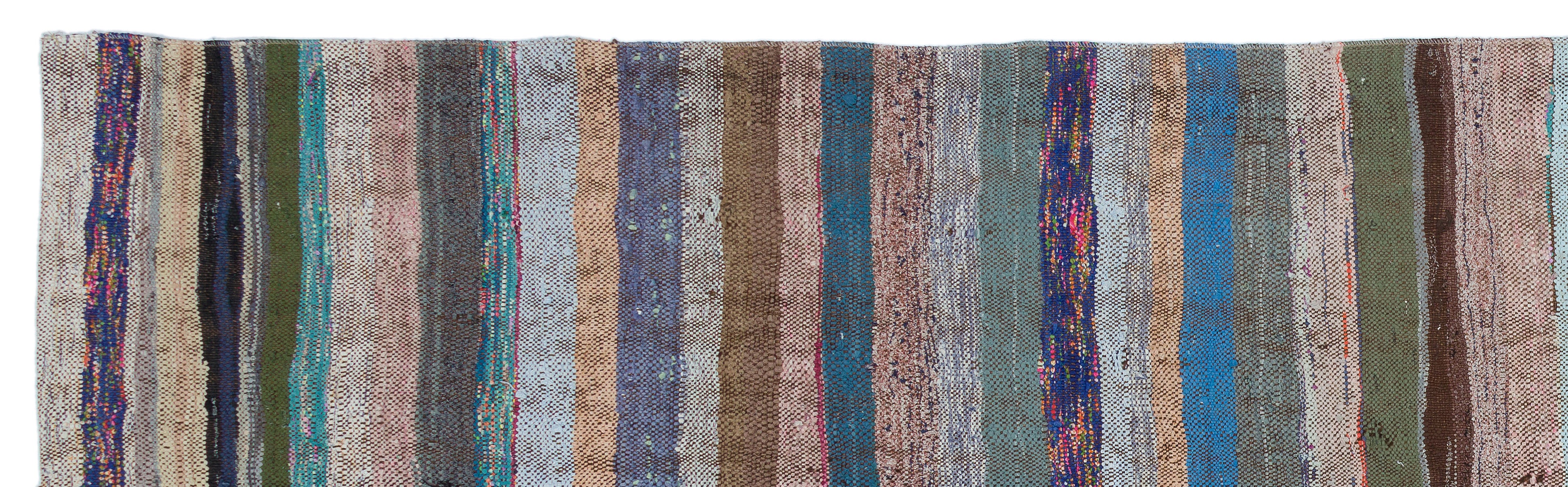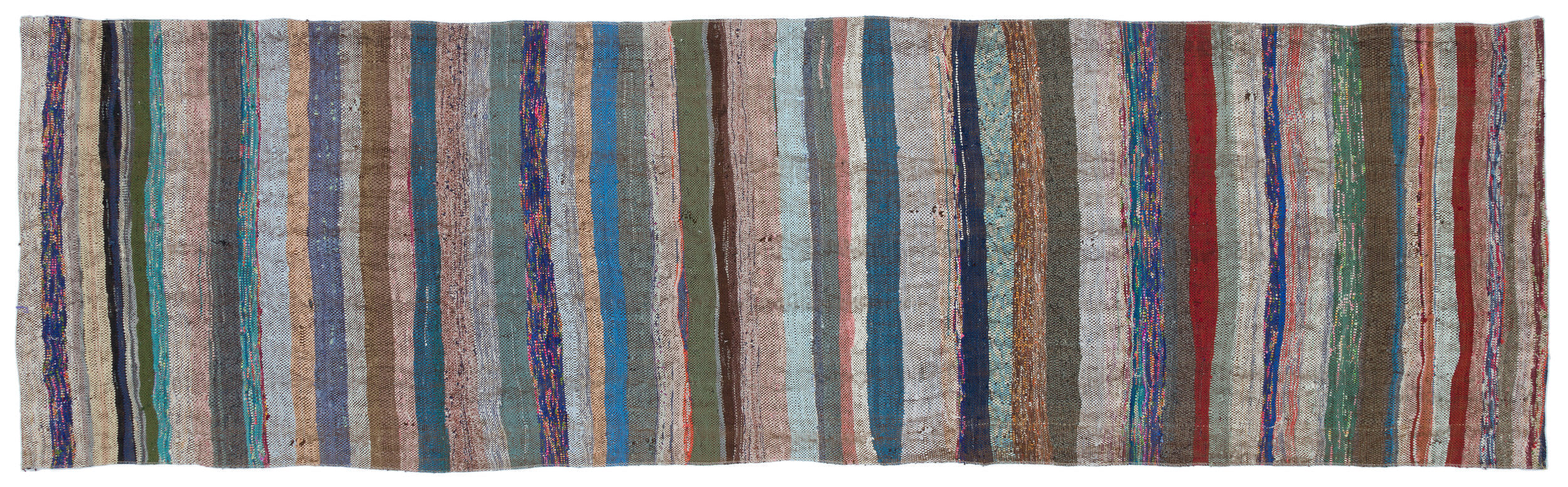 Girit Kahverengi Çizgili Yün El Dokuma Halısı 105 x 348