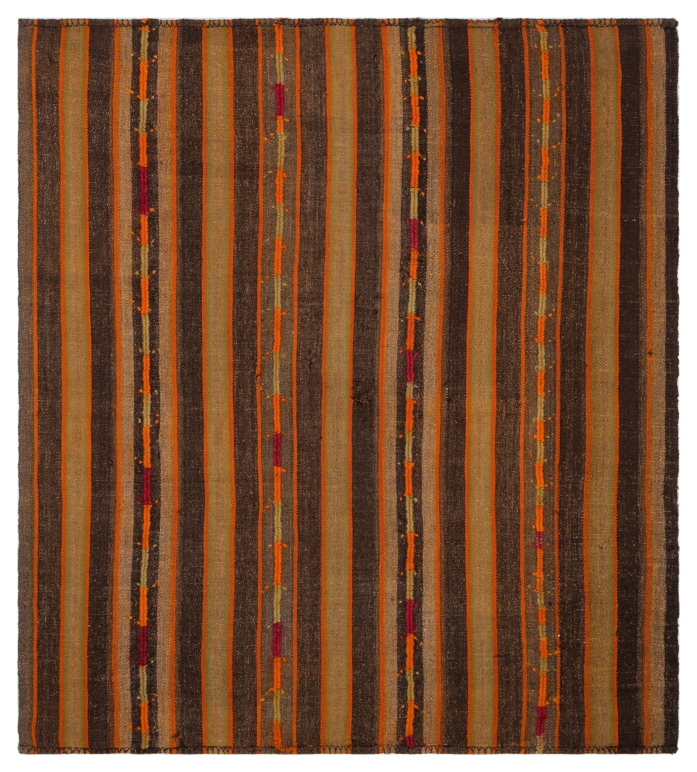 Girit Kahverengi Çizgili Yün El Dokuma Halısı 171 x 186