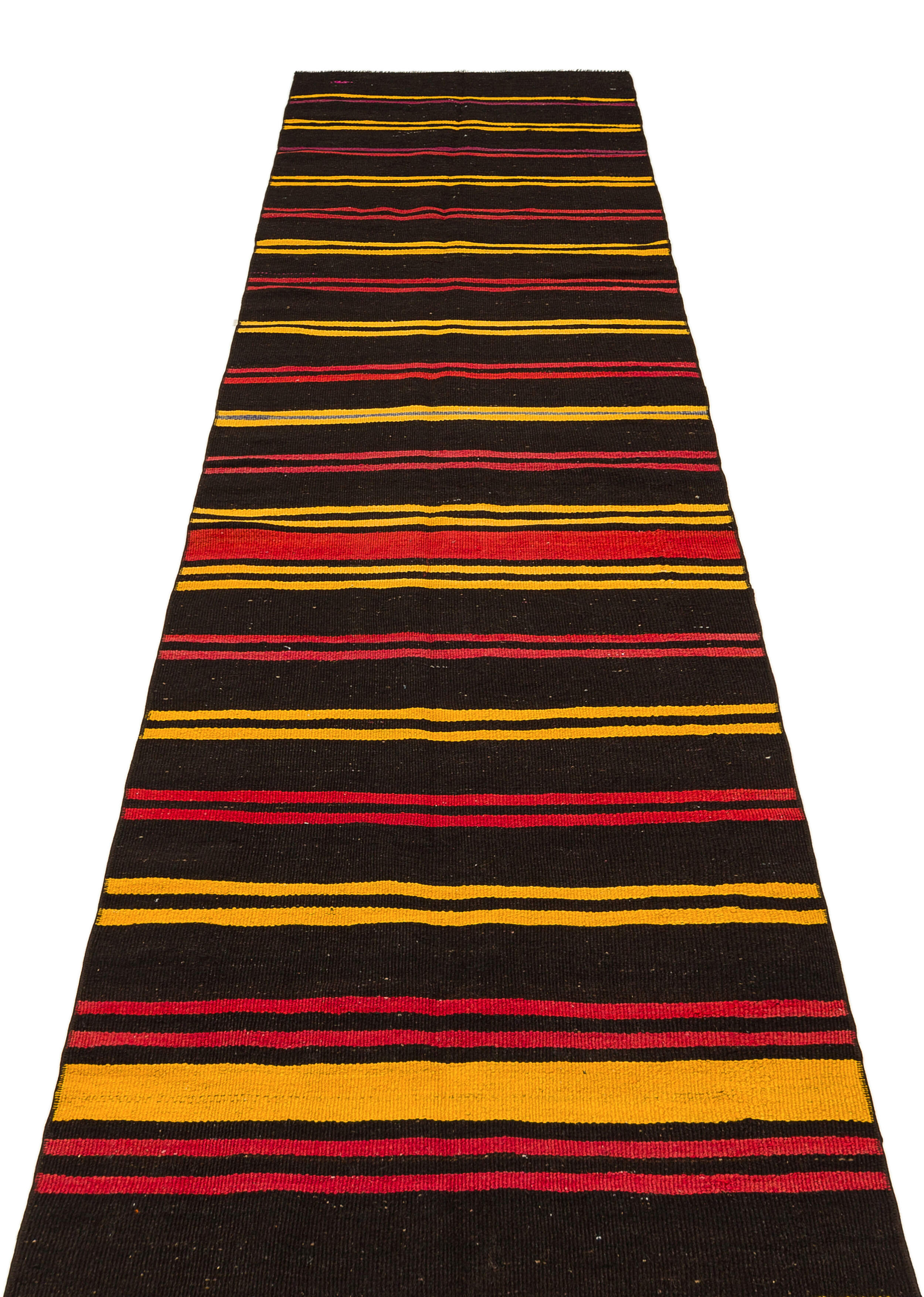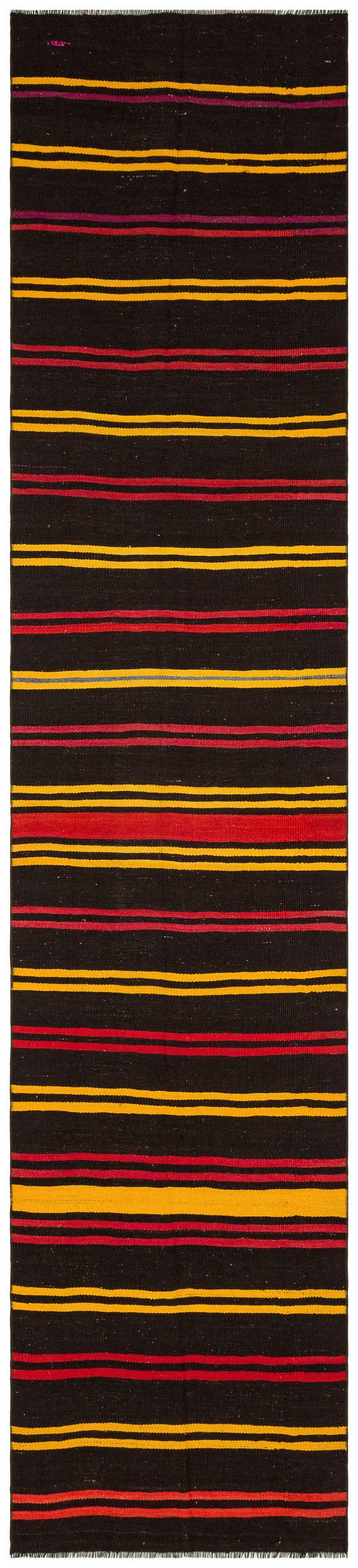 Girit Kahverengi Çizgili Yün El Dokuma Halısı 086 x 394