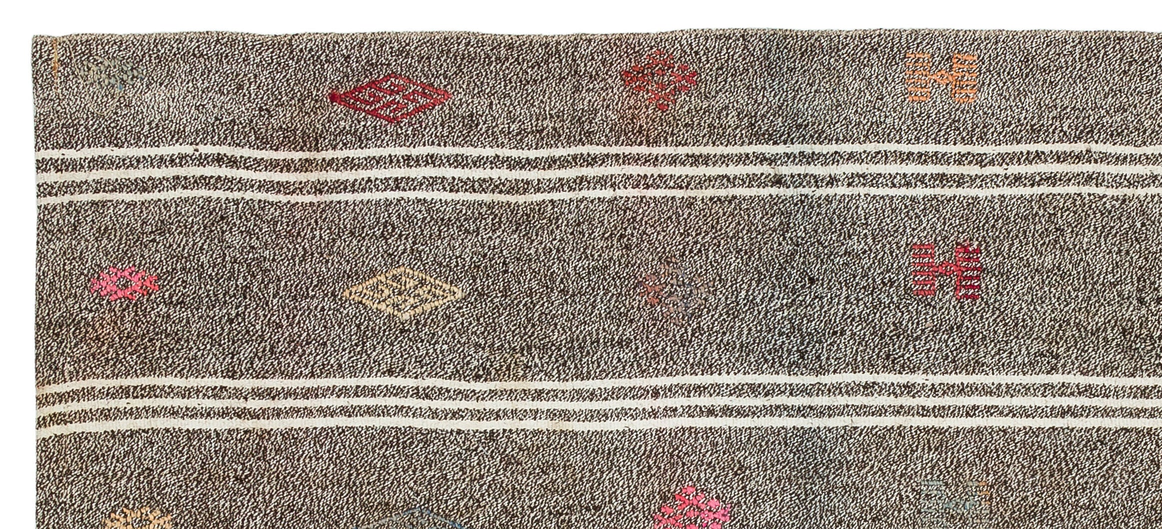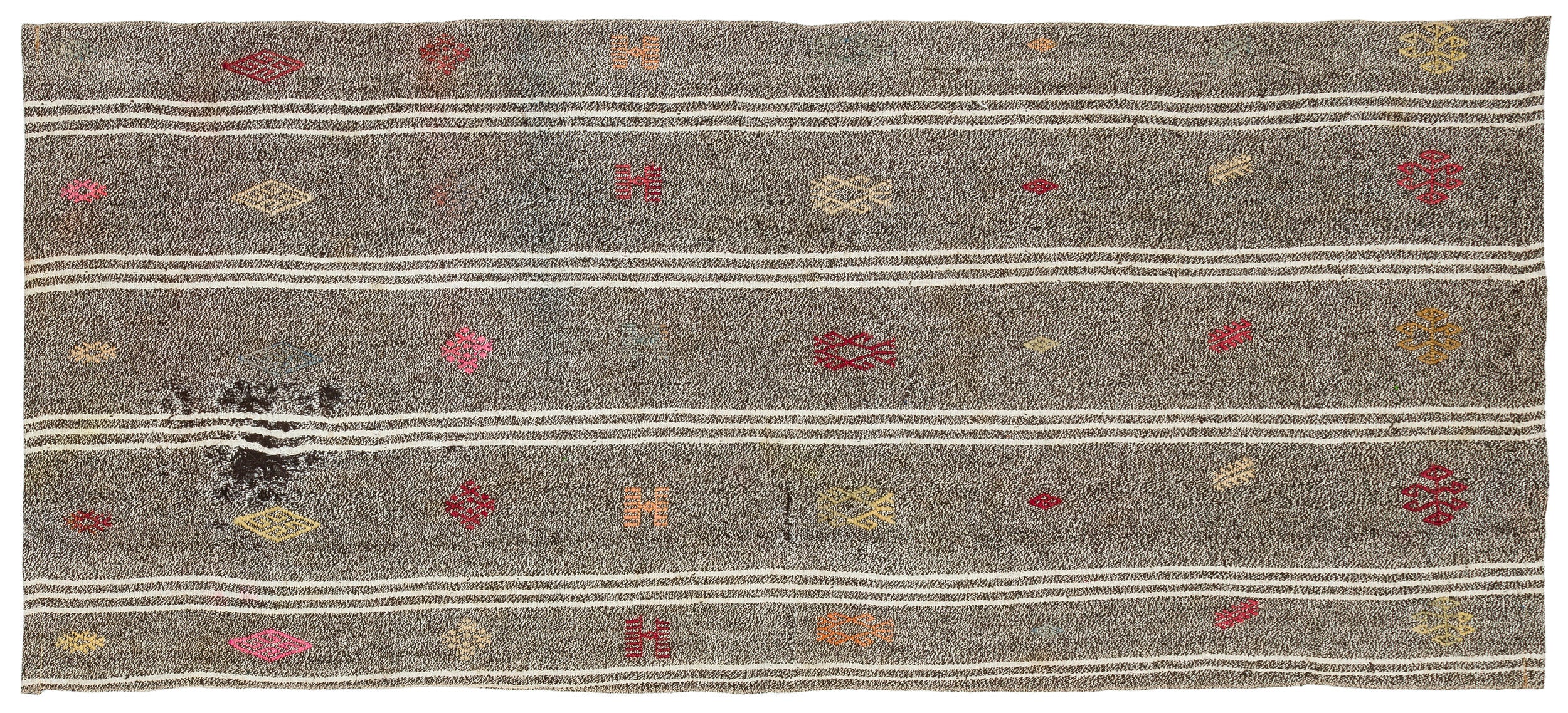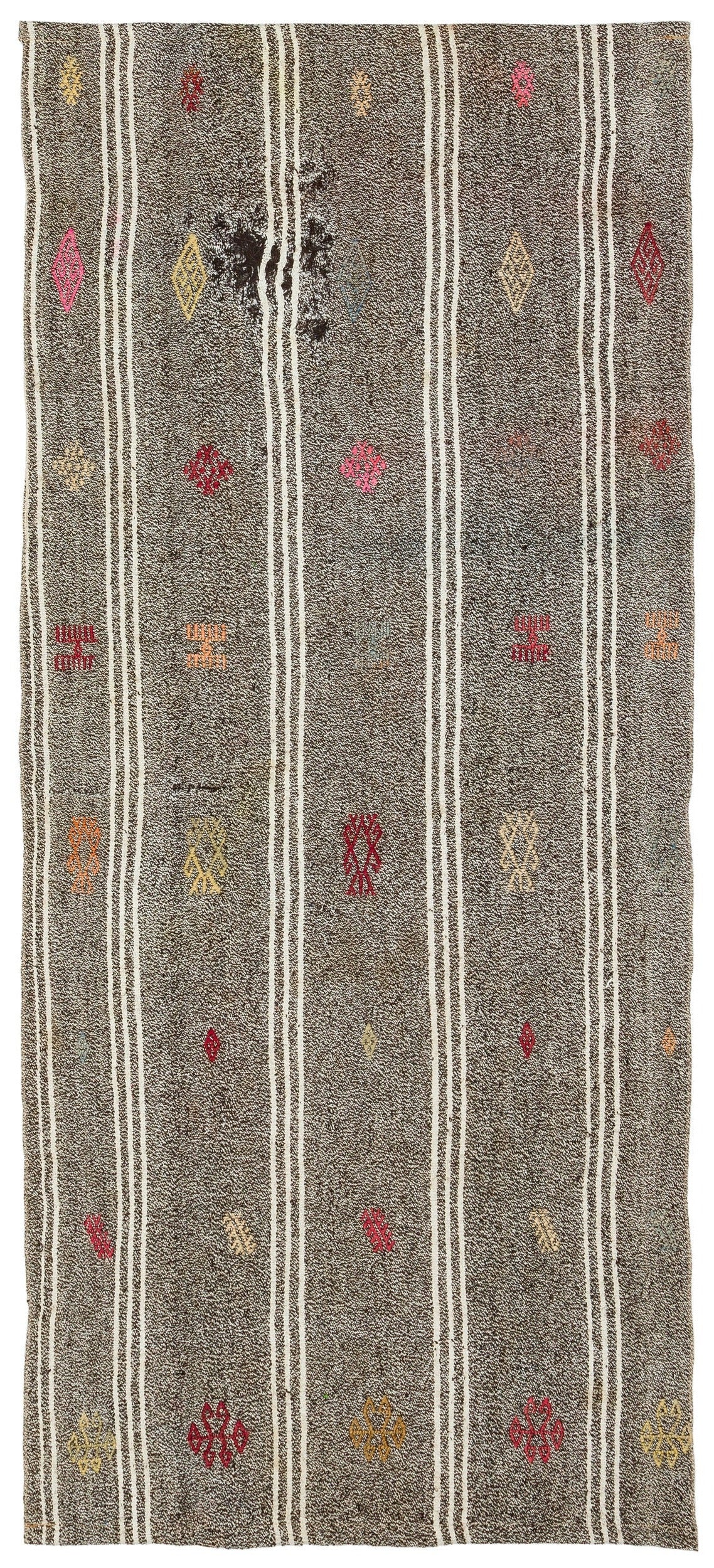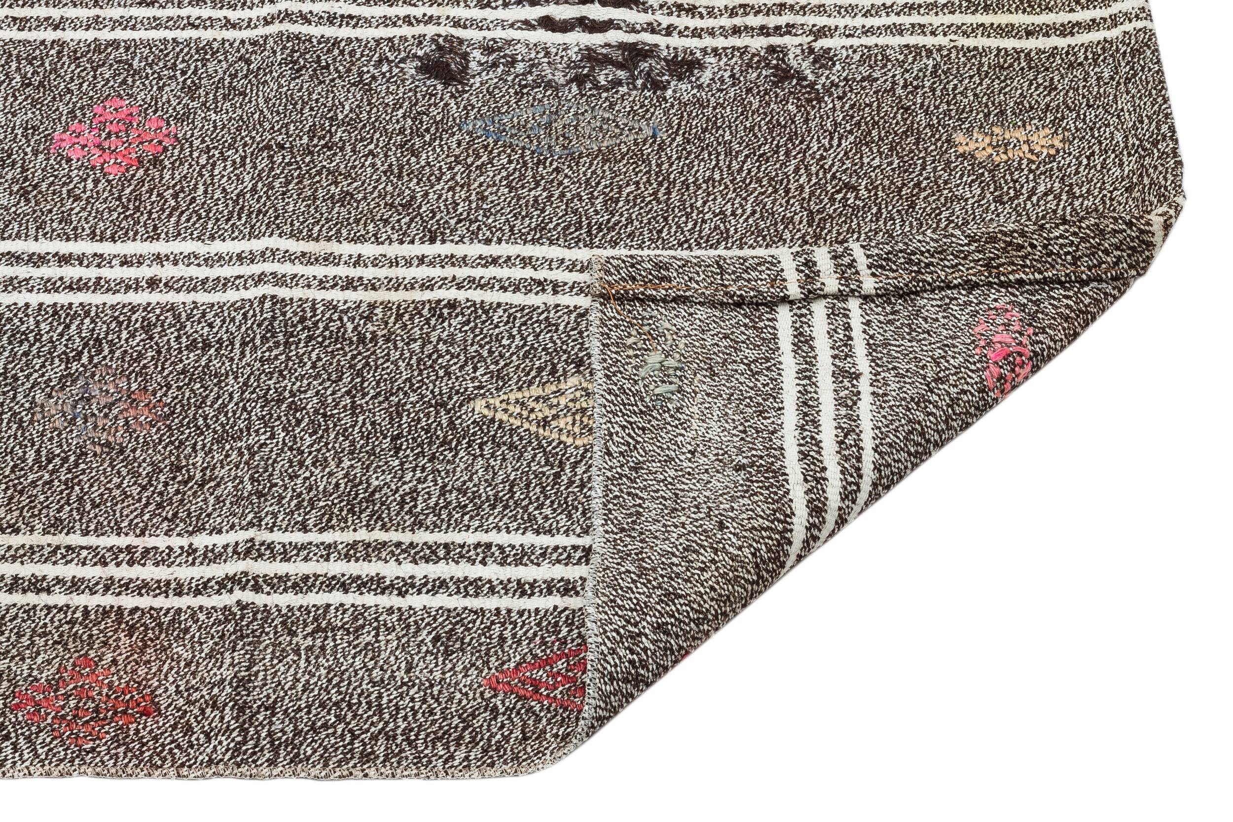 Girit Kahverengi Çizgili Yün El Dokuma Halısı 093 x 211