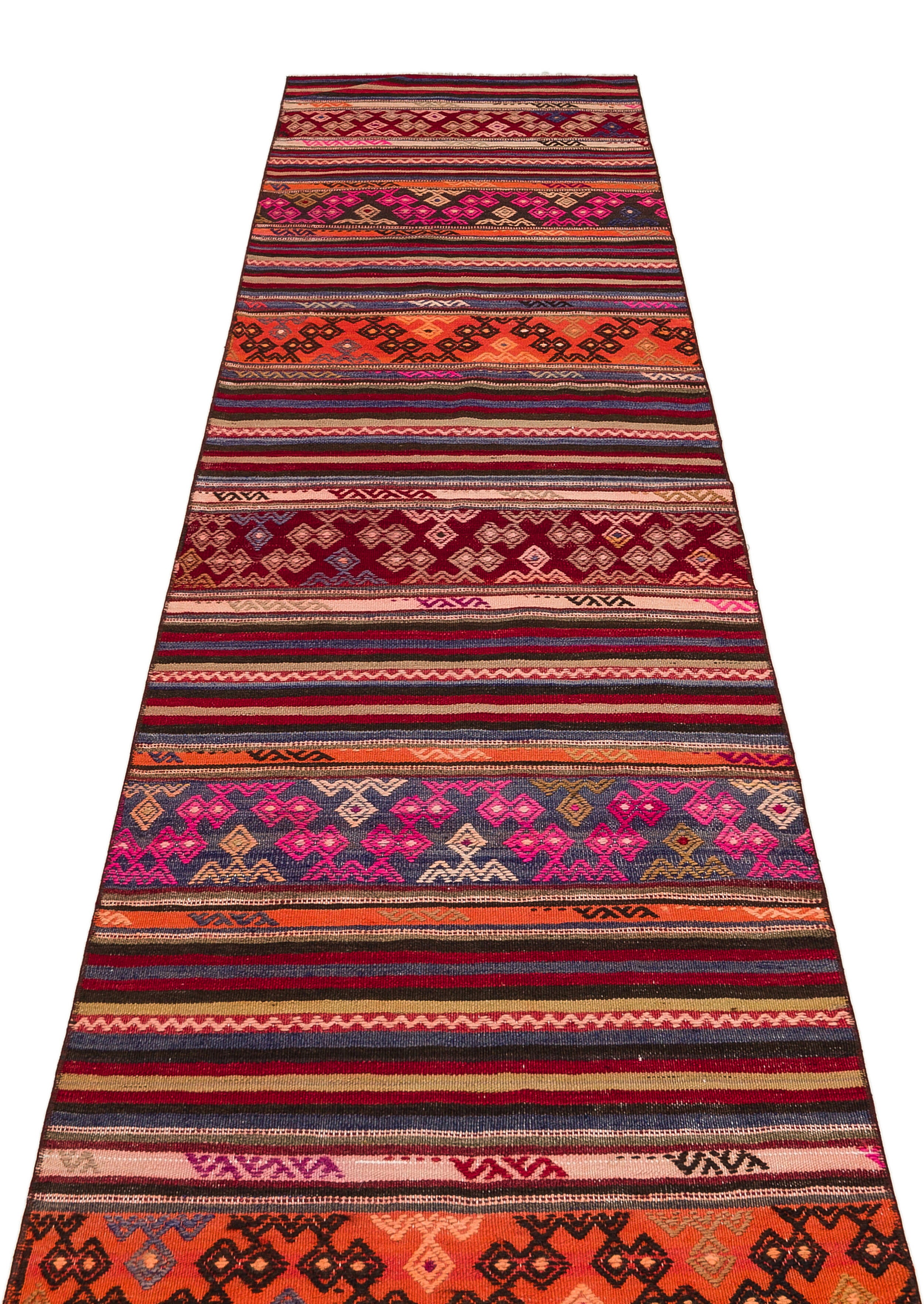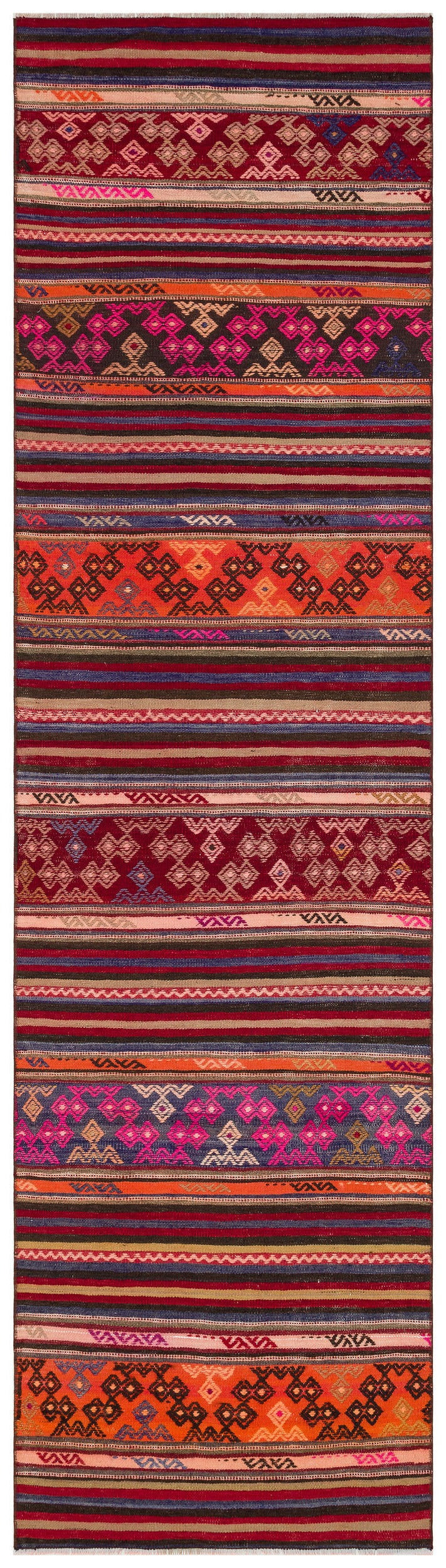 Girit Kahverengi Geometrik Yün El Dokuma Halısı 080 x 297