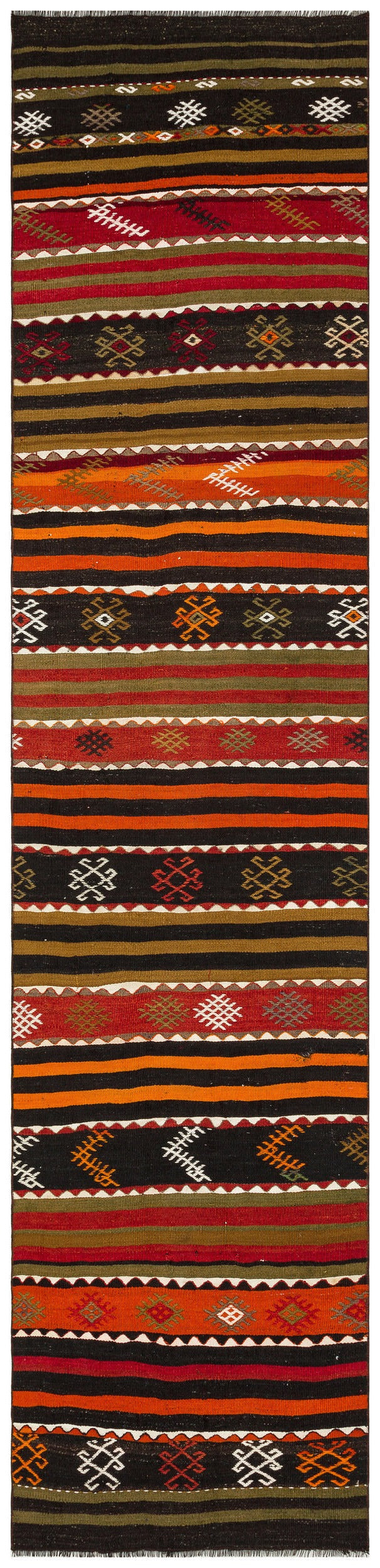 Girit Kahverengi Geometrik Yün El Dokuma Halısı 083 x 360