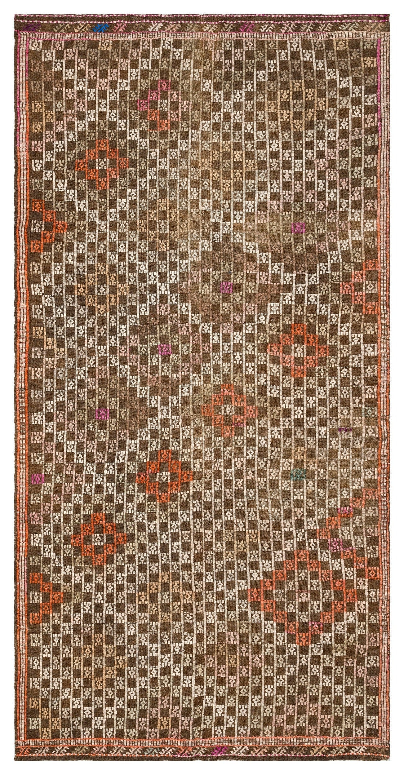 Girit Kahverengi Geometrik Yün El Dokuma Halısı 138 x 285