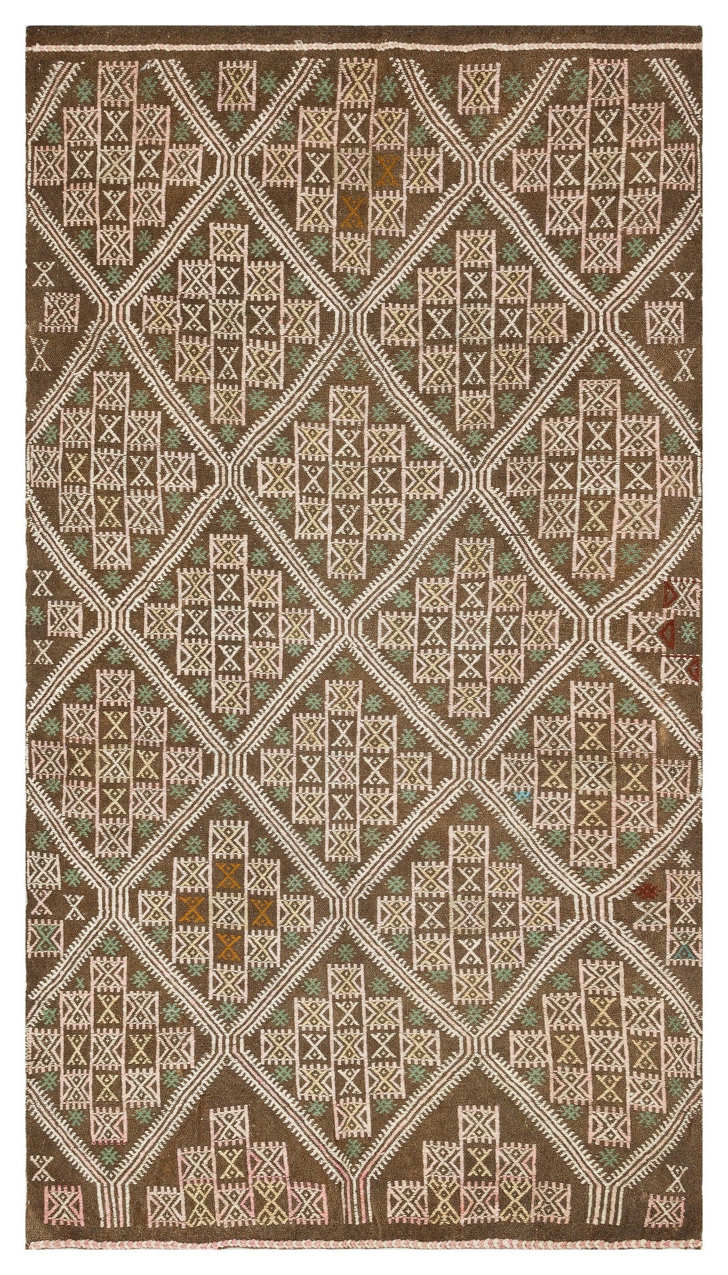Girit Kahverengi Geometrik Yün El Dokuma Halısı 145 x 255