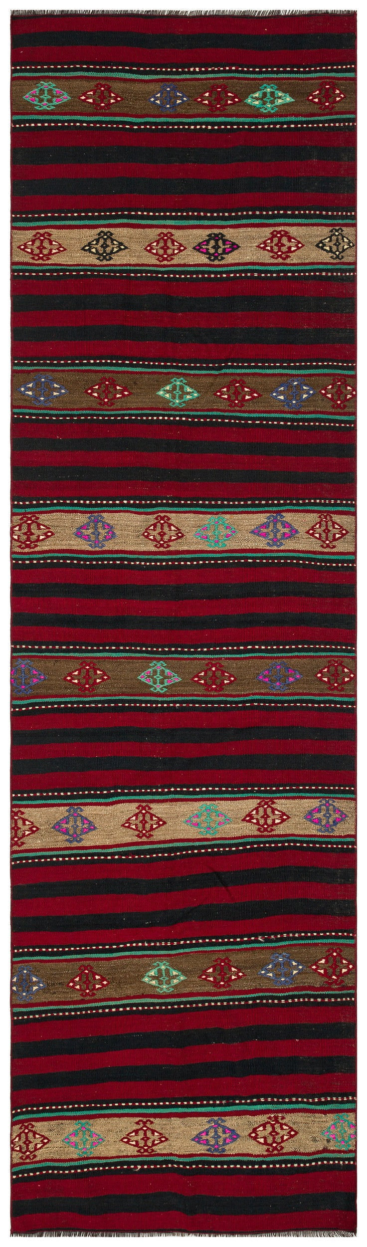 Girit Kırmızı Çizgili Yün El Dokuma Halısı 090 x 311