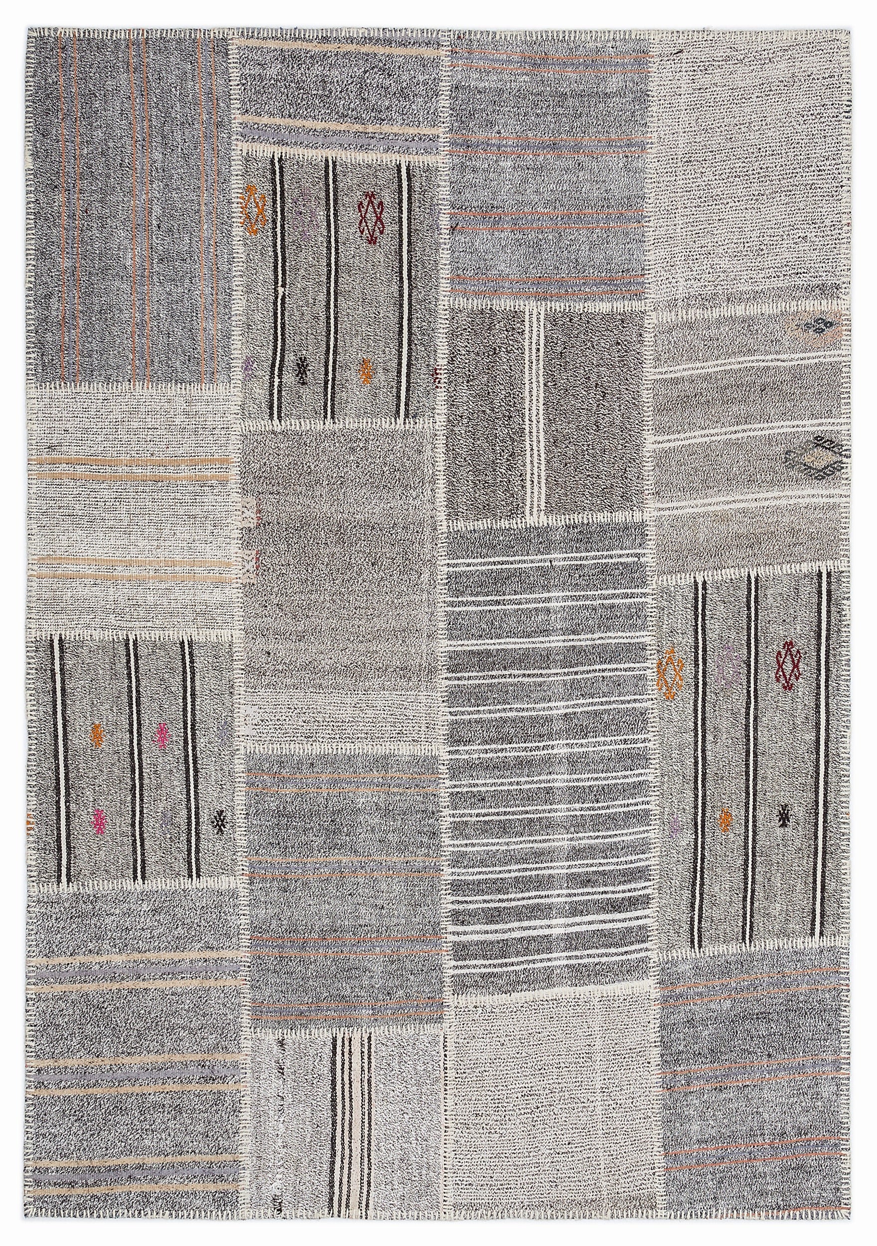 Teselya 1250 Gri Çizgili Yün El Dokuma Halısı 160 x 230