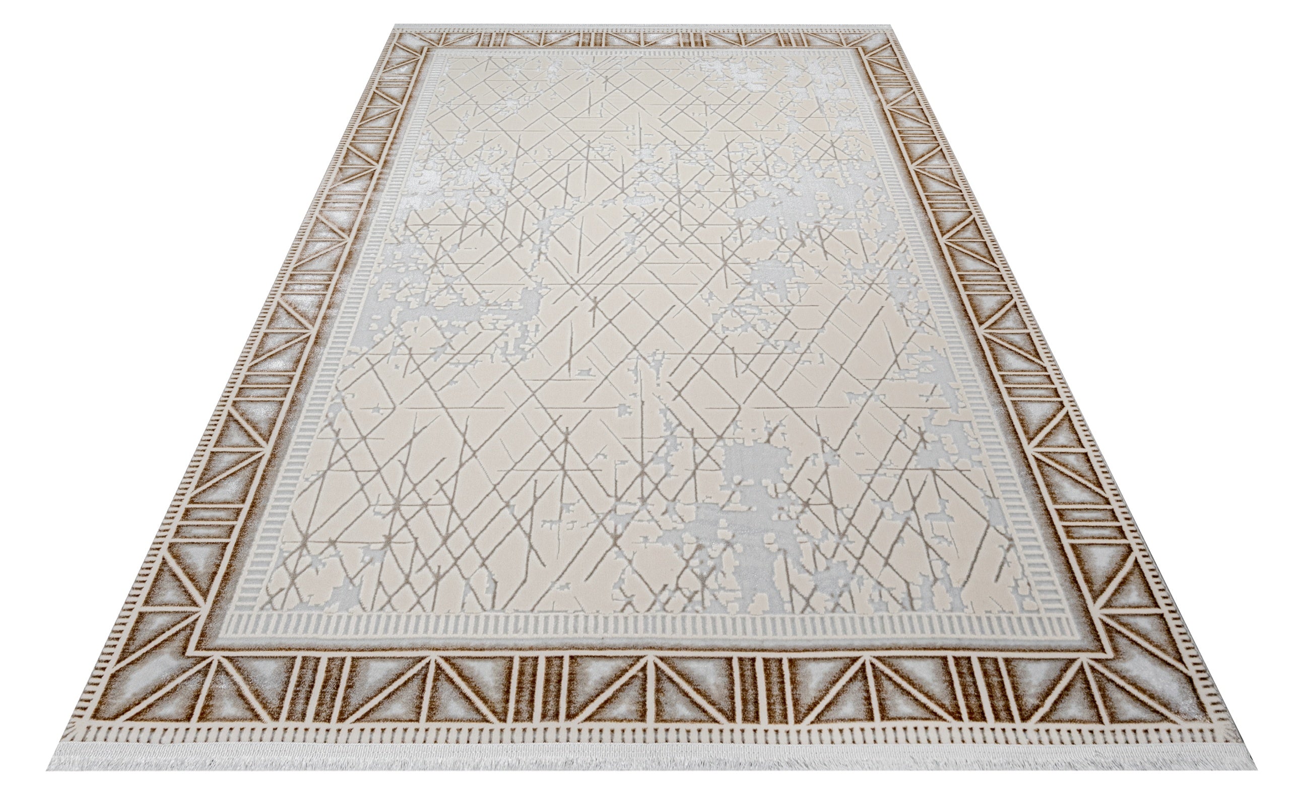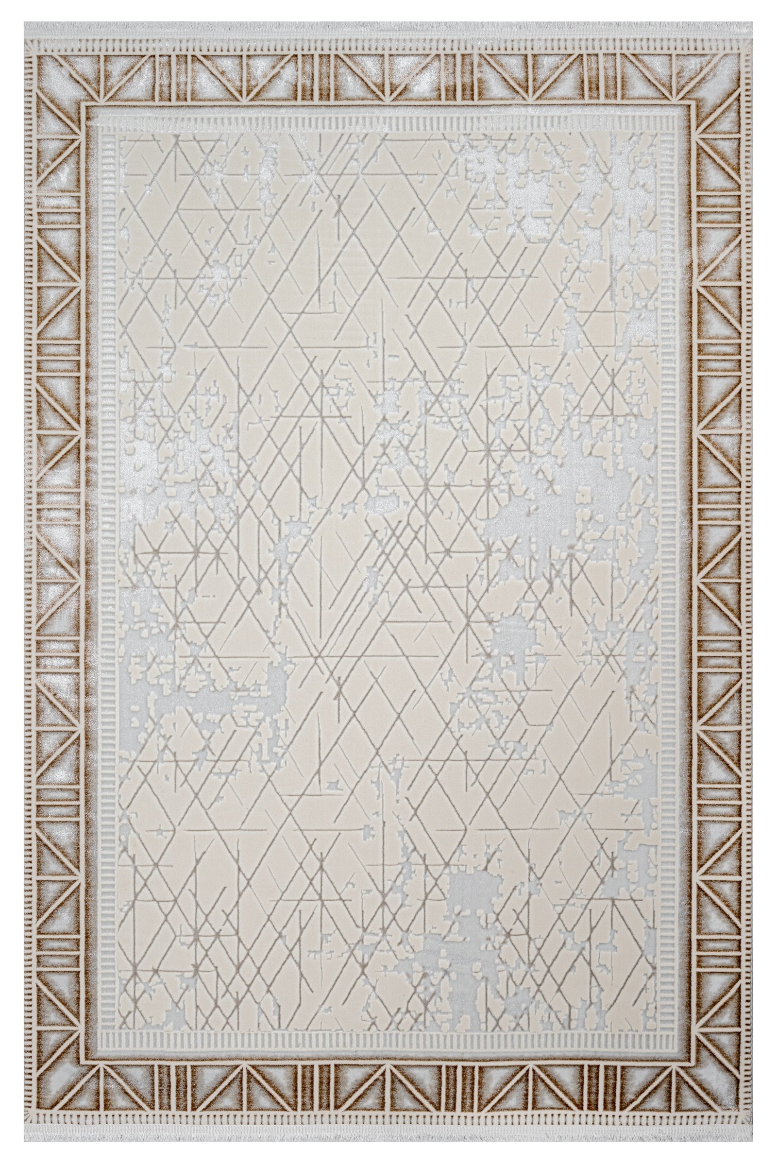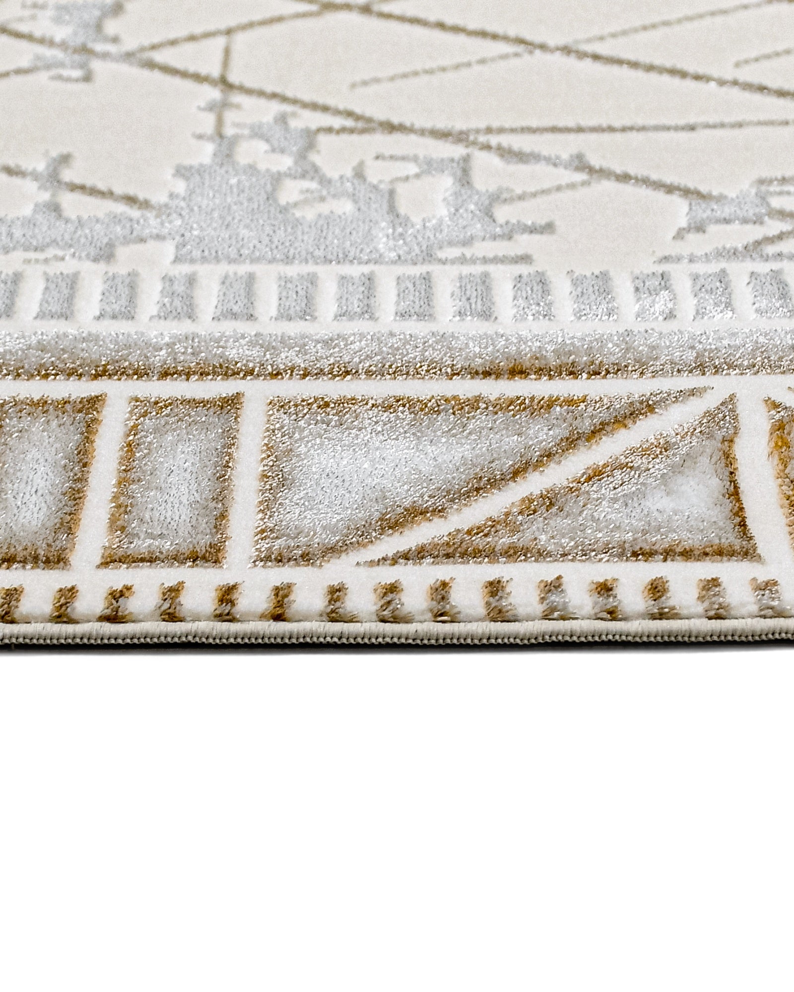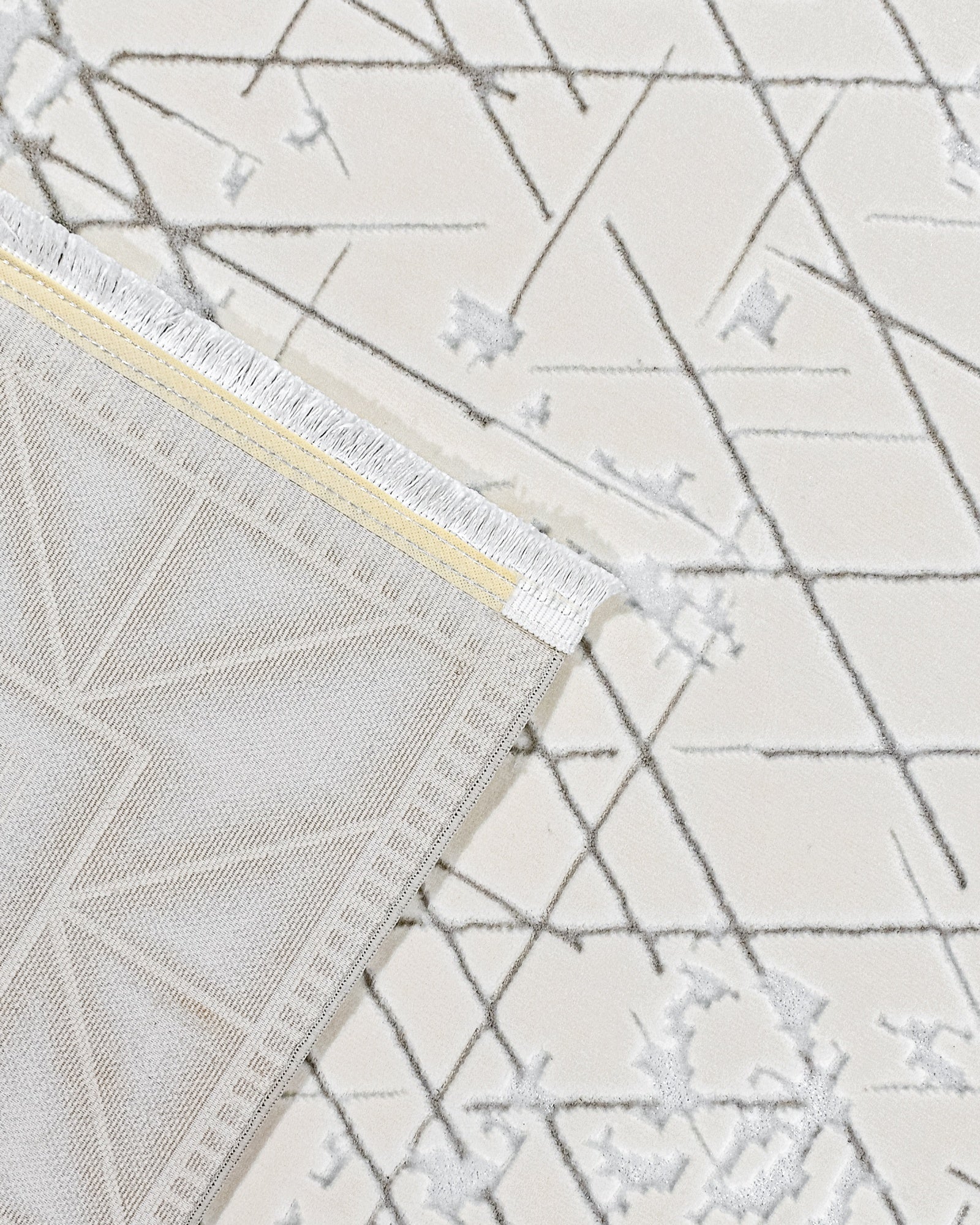 Emerie Beyaz Çerçeveli Polyester Makine Halısı