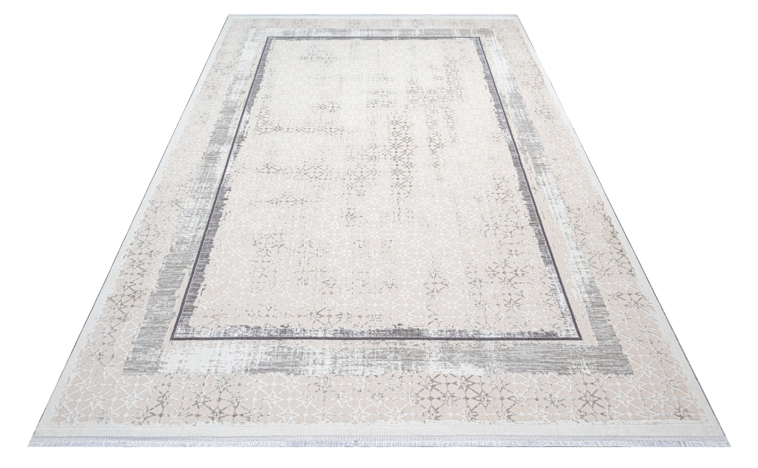 Kinsley Beyaz Çerçeveli Polyester Makine Halısı