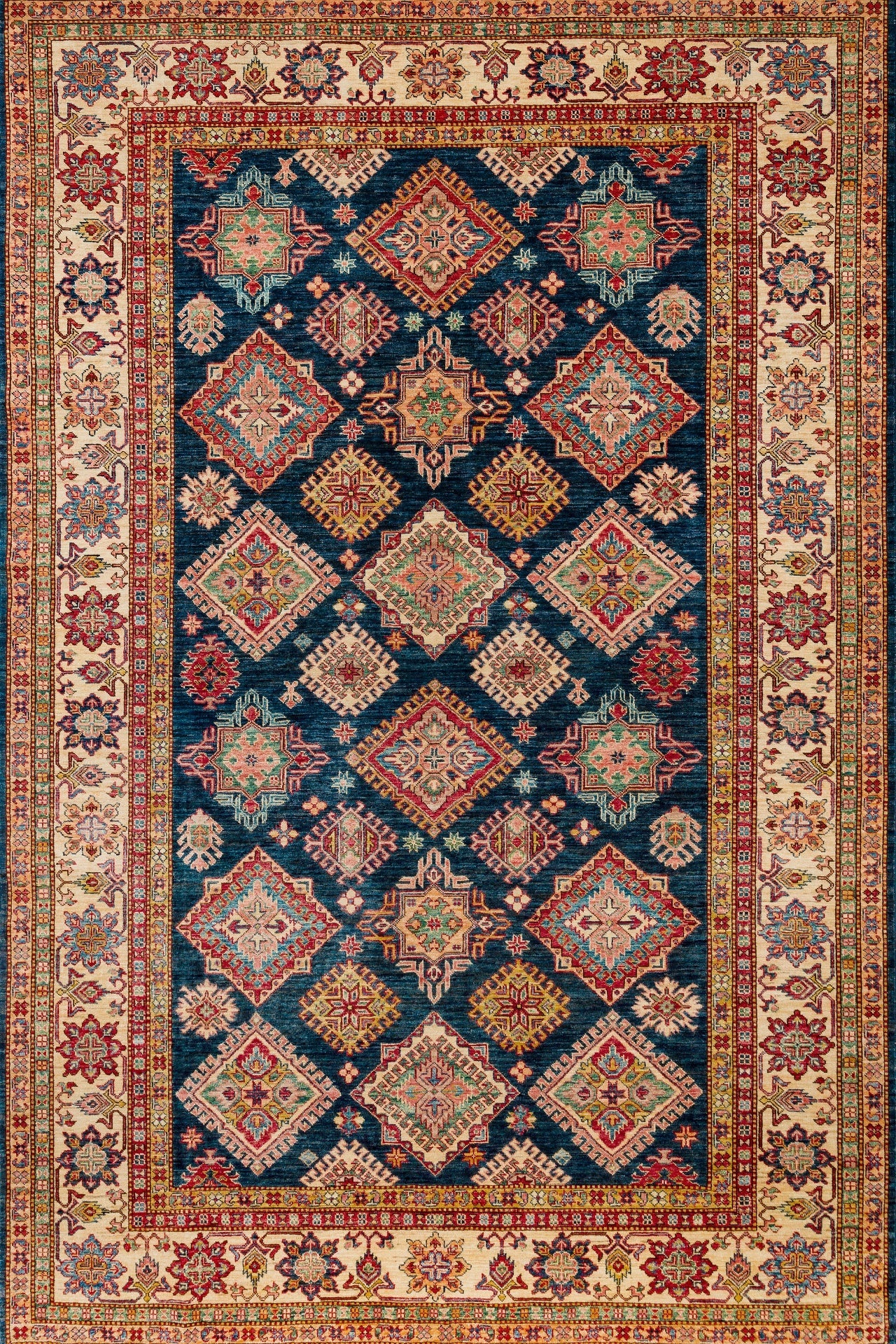 Mavi Bordürlü Modern Etnik Desenli Halı | Makinada Yıkanabilir | Hav Toz Vermez | Leke Tutmayan | Kaymaz Taban | Dijital Makine Baskı | Salon Yolluk Mutfak Halısı