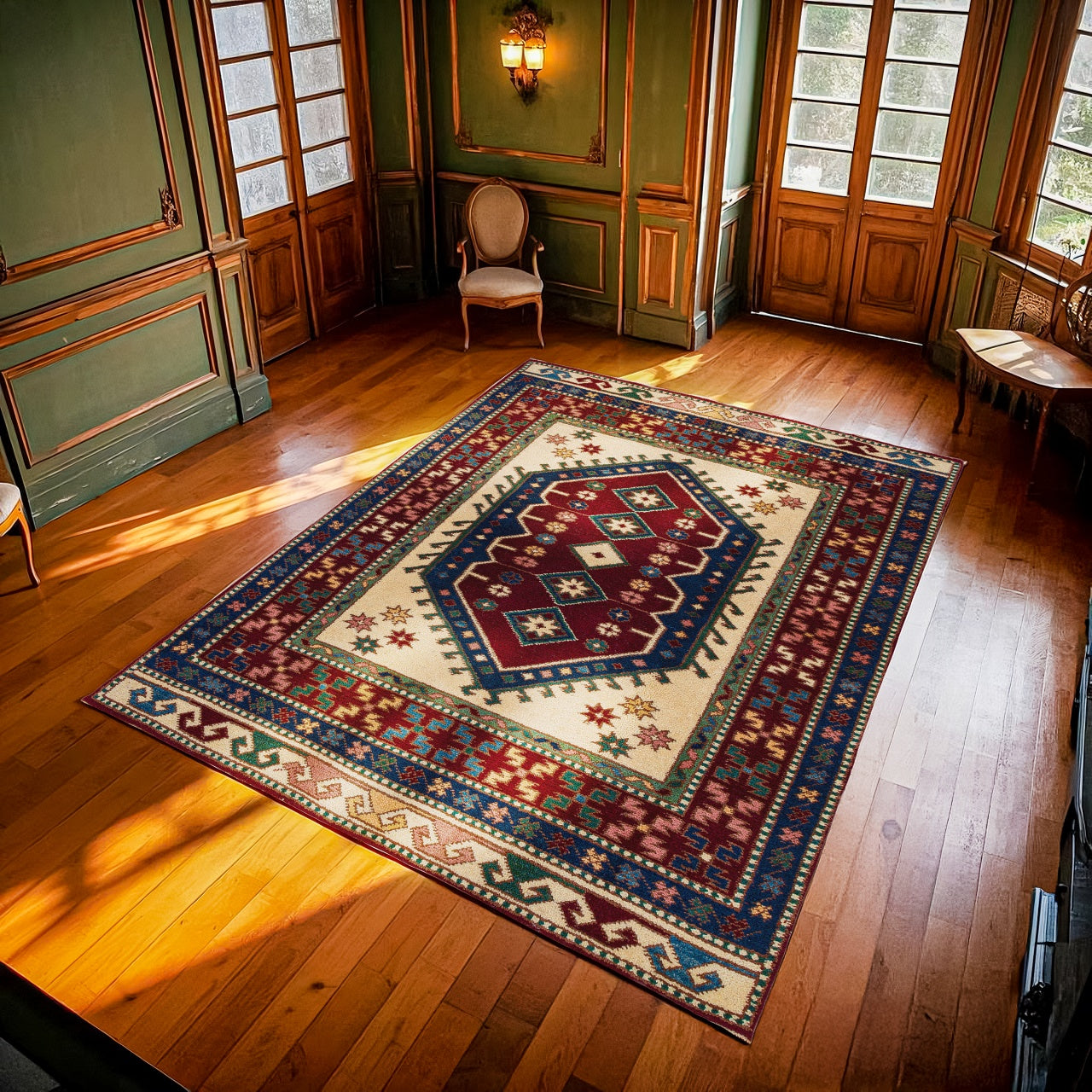 Bordo Göbekli Modern Etnik Desenli Halı | Makinada Yıkanabilir | Hav Toz Vermez | Leke Tutmayaz | Kaymaz Taban | Dijital Makine Baskı | Salon Yolluk Mutfak Halısı