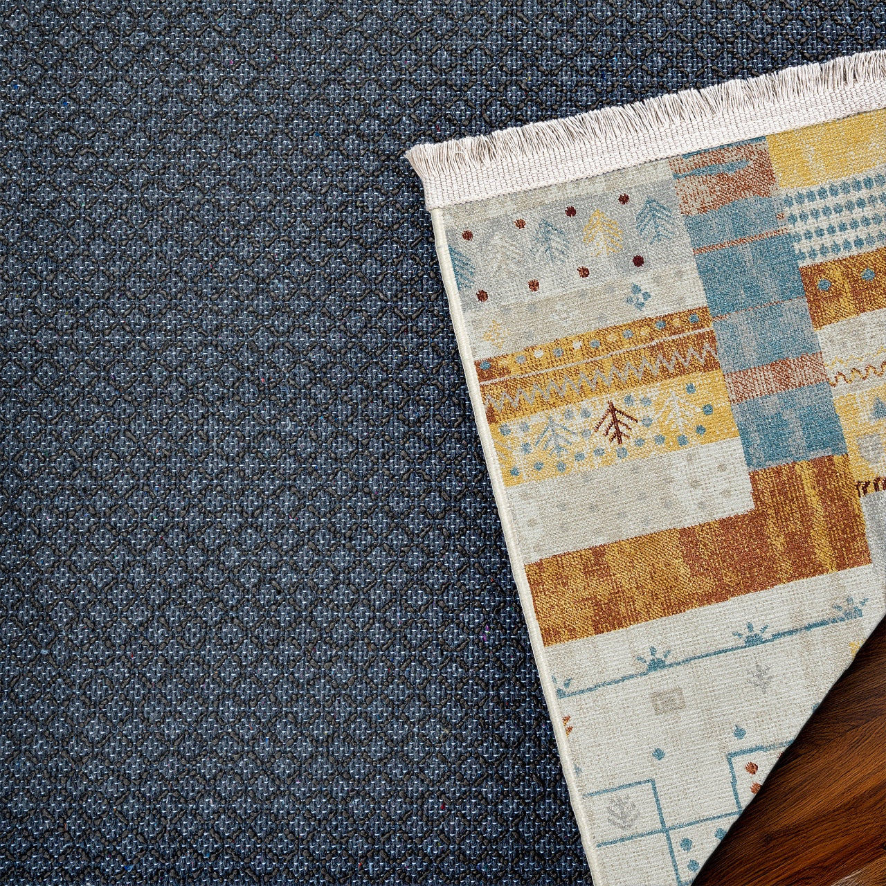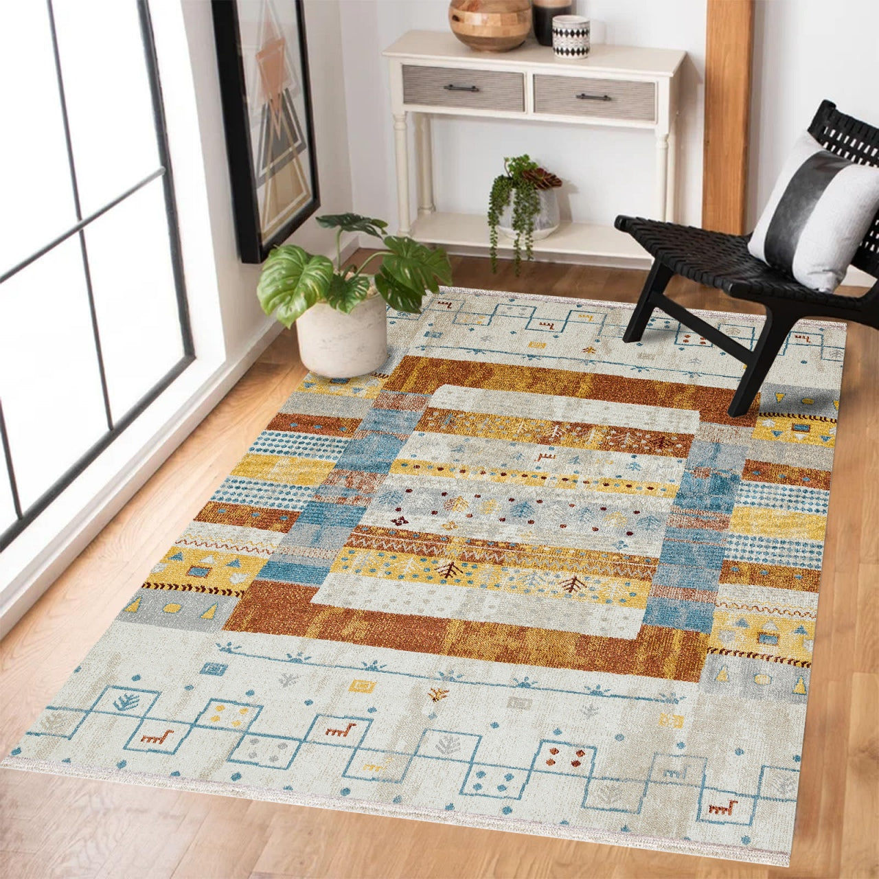 Krem Etnik Modern Etnik Desenli Halı | Makinada Yıkanabilir | Hav Toz Vermez | Leke Tutmayan | Kaymaz Taban | Dijital Makine Baskı | Salon Yolluk Mutfak Halısı