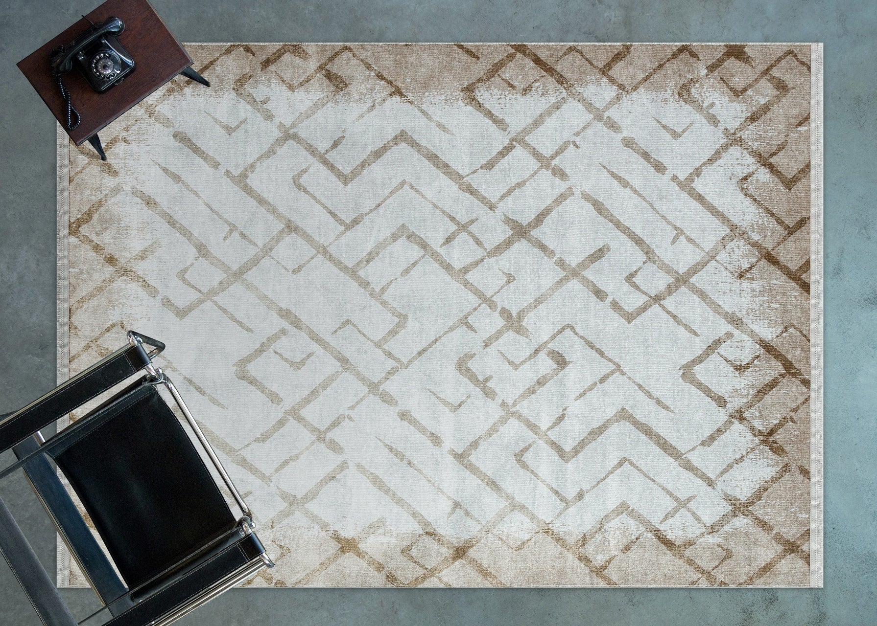 Krem Geometrik Modern Etnik Desenli Halı | Makinada Yıkanabilir | Hav Toz Vermez | Leke Tutmayan | Kaymaz Taban | Dijital Makine Baskı | Salon Yolluk Mutfak Halısı