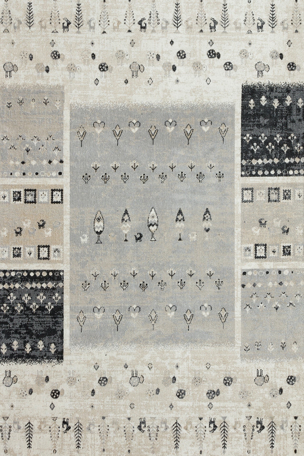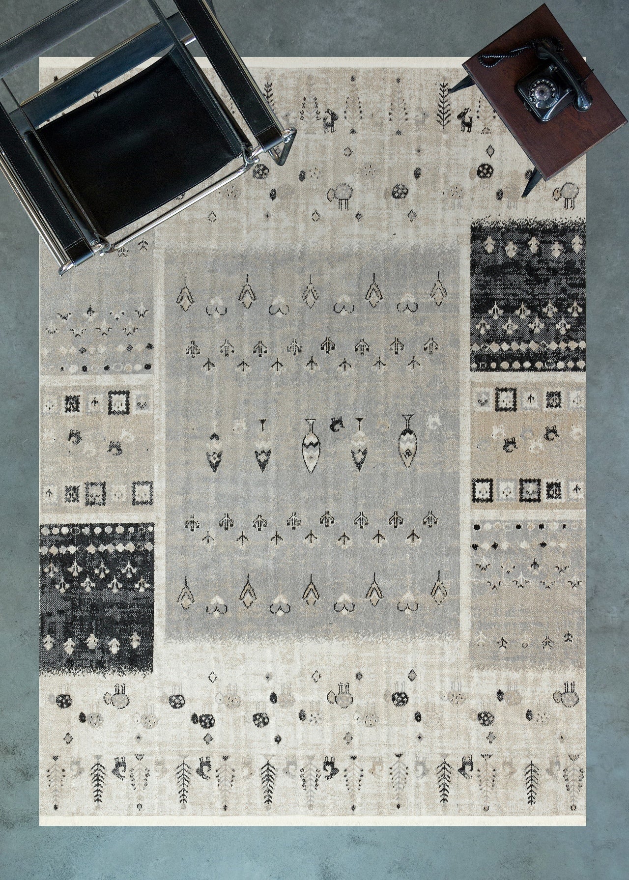 Krem Soyut Modern Etnik Desenli Halı | Makinada Yıkanabilir | Hav Toz Vermez | Leke Tutmayan | Kaymaz Taban | Dijital Makine Baskı | Salon Yolluk Mutfak Halısı