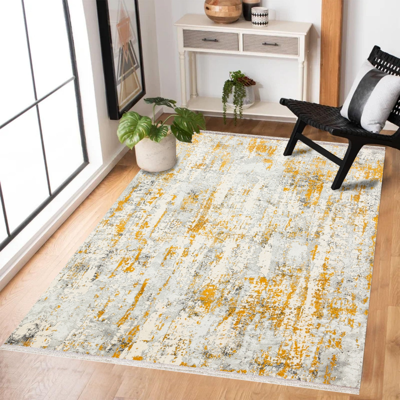 Sarı Modern Modern Etnik Desenli Halı | Makinada Yıkanabilir | Hav Toz Vermez | Leke Tutmayan | Kaymaz Taban | Dijital Makine Baskı | Salon Yolluk Mutfak Halısı