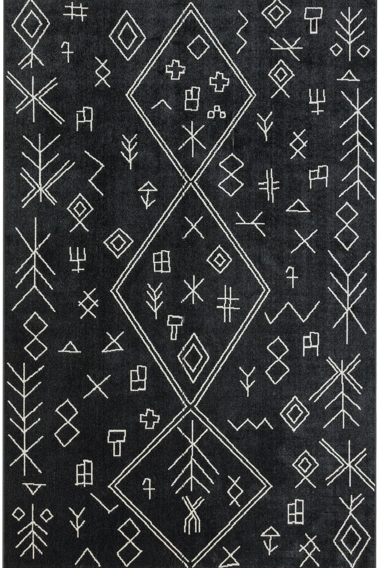 Siyah Etnik Modern Etnik Desenli Halı | Makinada Yıkanabilir | Hav Toz Vermez | Leke Tutmayan | Kaymaz Taban | Dijital Makine Baskı | Salon Yolluk Mutfak Halısı