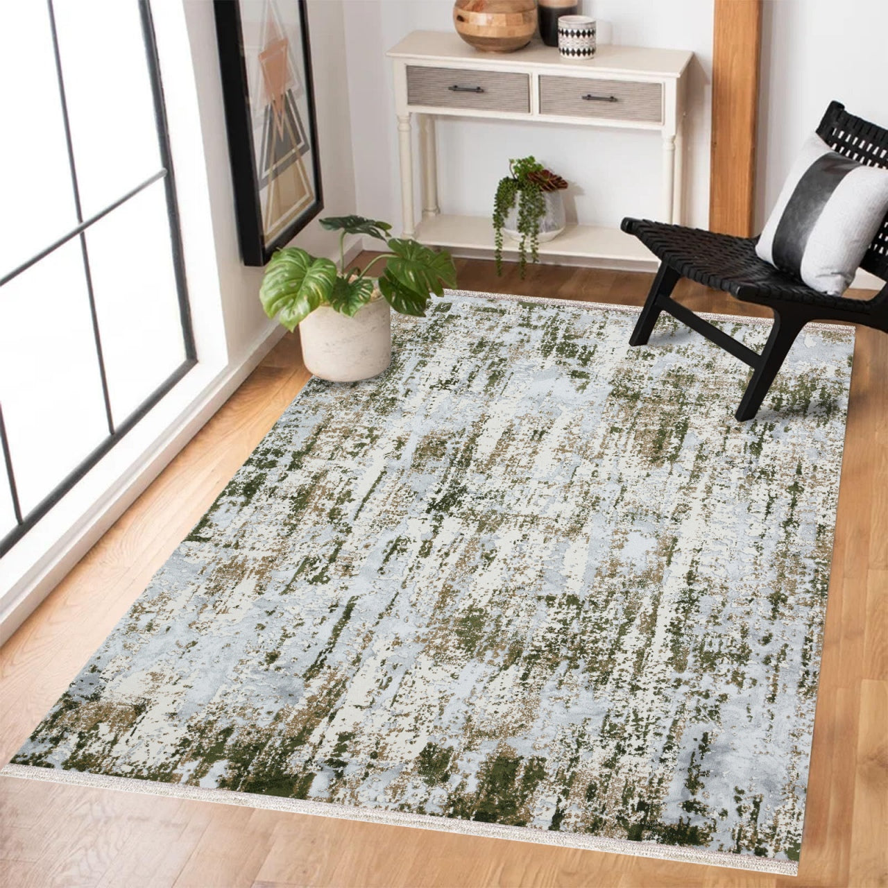 Yeşil Modern Modern Etnik Desenli Halı | Makinada Yıkanabilir | Hav Toz Vermez | Leke Tutmayan | Kaymaz Taban | Dijital Makine Baskı | Salon Yolluk Mutfak Halısı